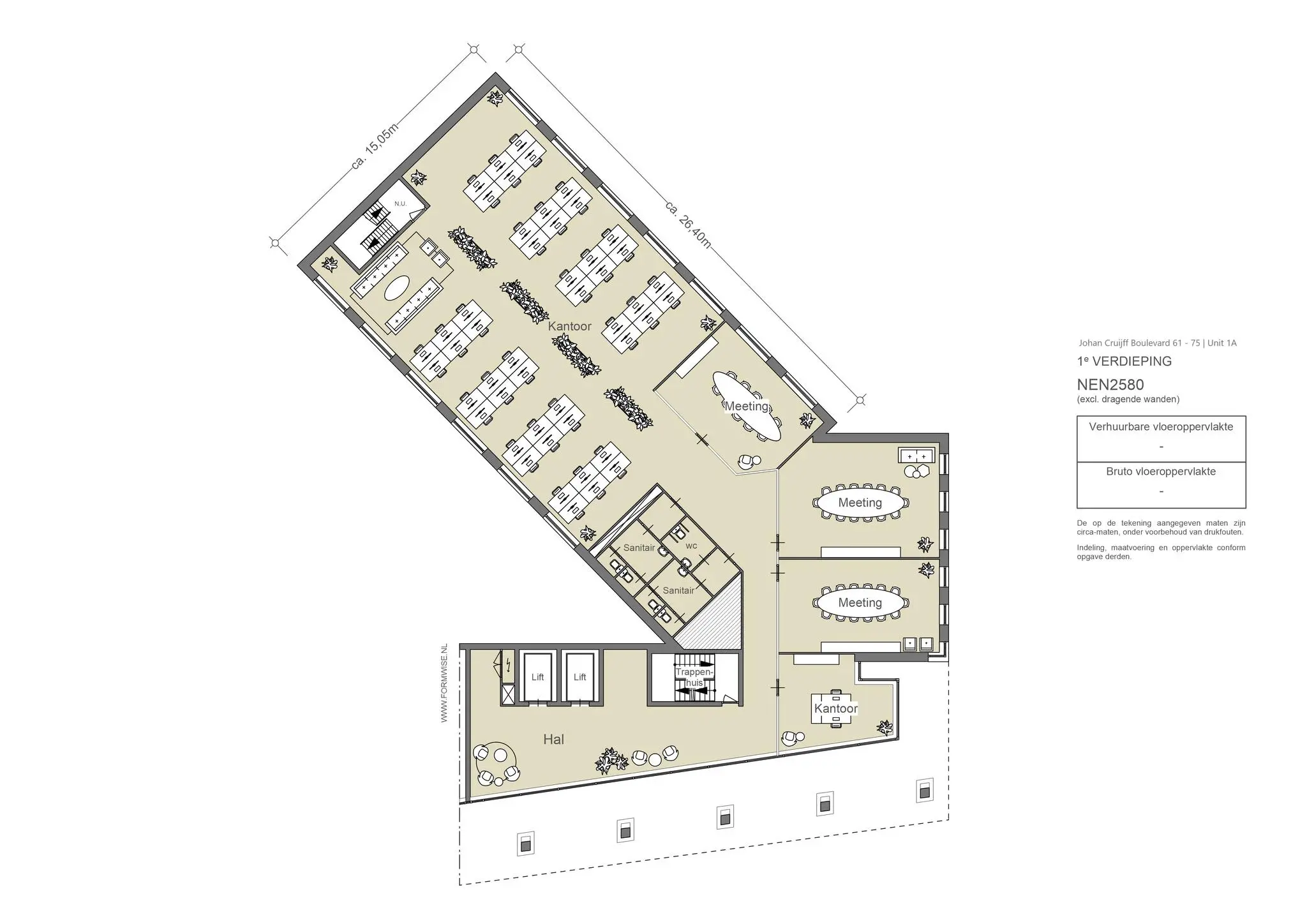 - Unit 1A: 619,86 m² VVO kantoorruimte