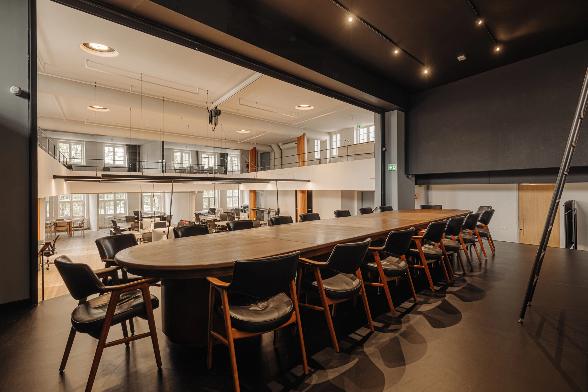• werken in de voormalige theaterzaal met herkenbaar hoofdpodium