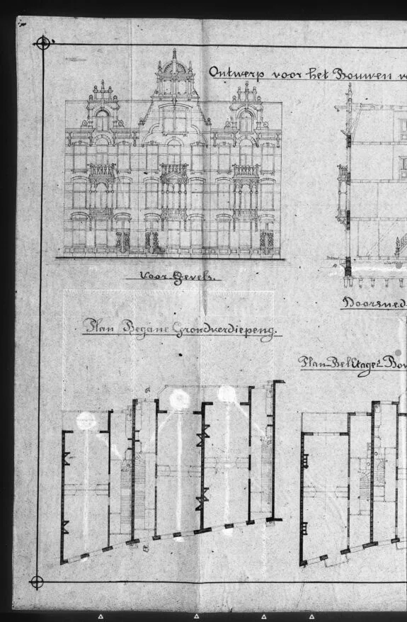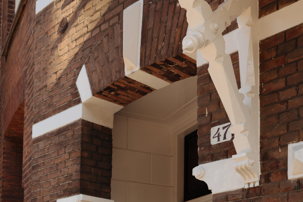 Het pand aan de Koninginneweg 47 is in 1897 gebouwd als een drie-eenheid samen met nr. 49 en 51, door de architecten J. Greiner en S. Luteijn. De bouwstijl kan worden getypeerd als eclecticisme. Oneerbiedig gezegd is eclecticisme ‘een beetje van dit en een beetje van dat’. De architect leent elementen uit verschillende bouwstijlen. Bij een goed doordacht eclectisch ontwerp ontstaat echter een samenhangend nieuw geheel, door het beste uit de diverse oude stijlen te gebruiken. Deze stijl was populair in de tweede helft van de 19e eeuw, vooral in de uitbreidingswijken. Door de grote bouwproductie in die tijd konden veel ornamenten seriematig worden gemaakt. Architecten, of aannemers die als architect optraden, bestelden de gewenste ornamenten uit een catalogus. Vooral ornamenten in classicistische stijl of in de 18e-eeuwse Lodewijkstijlen waren populair: frontons, festoenen, guirlandes, halfzuiltjes. Voorbeelden hiervan zijn de voormalige Nederlandsche Bank aan de Oude Turfmarkt, het Koning Willemshuis in de Egelantiersstraat en de witgepleisterde herenhuizen aan de Plantage Parklaan.