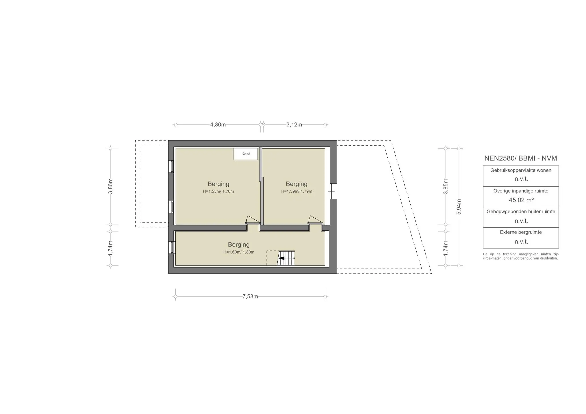 In het souterrain bevinden zich twee ruimtes die momenteel dienen als bergruimte. Aan de tuinzijde zijn er drie kelderramen.