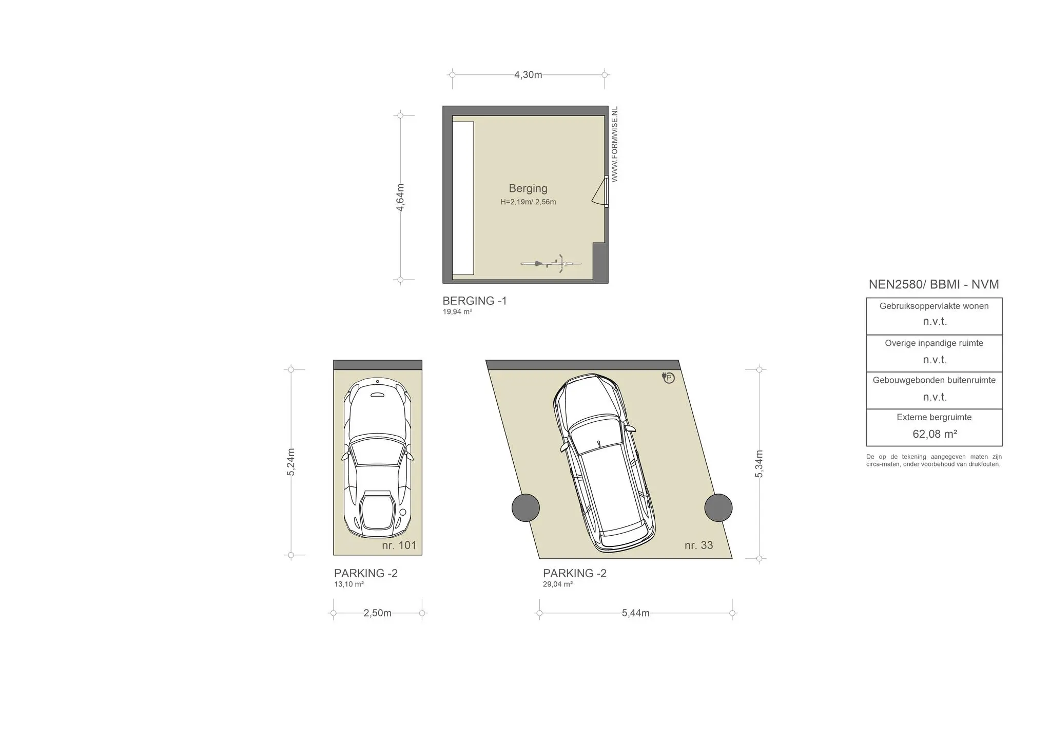 • De tweede parkeerplaats gelegen in de onderbouw -2 (nr. 101), wordt inclusief aangeboden