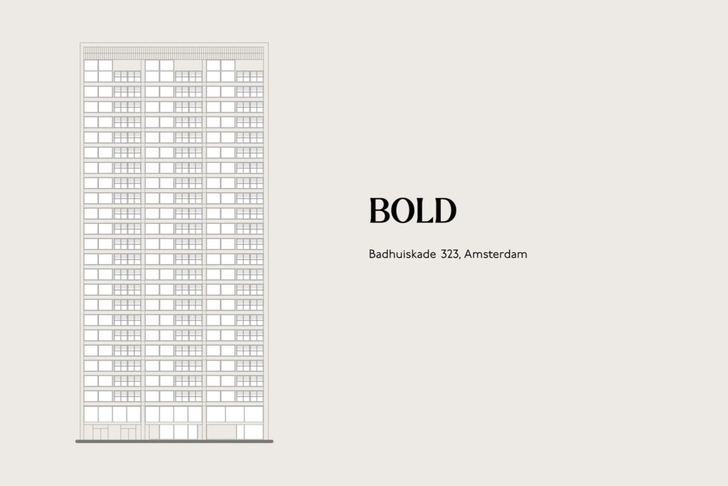 Het gebouw bestaat uit 151 appartementen, verdeeld over 24 verdiepingen, variërend van ca. 49 tot 167 m², en een aantal grotere penthouses. Luxe, comfort en voorzieningen zijn de thema’s die centraal staan in BOLD. De luxe van BOLD is bij binnenkomst direct zichtbaar, met een fraaie wand met postvakken, Bringme-boxen en een huismeester. BOLD biedt echter nog meer comfort om het leven aangenamer te maken. Zo zijn er op de derde tot en met de vijfde verdieping onder andere een professionele gym met sauna en doucheruimtes, en een bioscoop/theaterzaal met een weg te schuiven tribune en kitchenette. Daarnaast zijn er aparte ruimtes met klimaatkasten voor wijnen die geserveerd kunnen worden, en zijn er drie luxe uitgeruste gastenkamers beschikbaar.