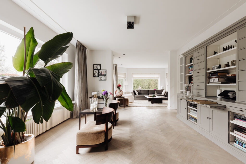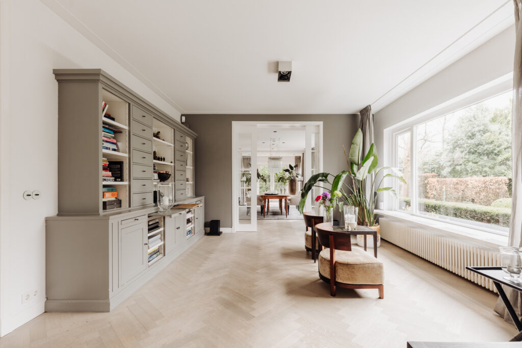De locatie aan de rand van Elsrijk is een van de meest sfeervolle en karakteristieke buurten met jaren ’30 woningen in Amstelveen. Dichtbij de rijksmonumentale Heemparken en het bos, de hockeyvelden en goede scholen. De villa ligt tussen Amsterdam en Het Stadshart, het winkelcentrum in. Cultuur leeft in het populaire Cobra museum, Museum Jan in het charmante oude dorp en het Bostheater. Heb je een grote liefde voor Amsterdam, dan is het centrum op fietsafstand. Zoals de huidige bewoner het zo mooi verwoord: ‘We hadden veel meer het gevoel dat we bij Amsterdam hoorden dan bij Amstelveen.’