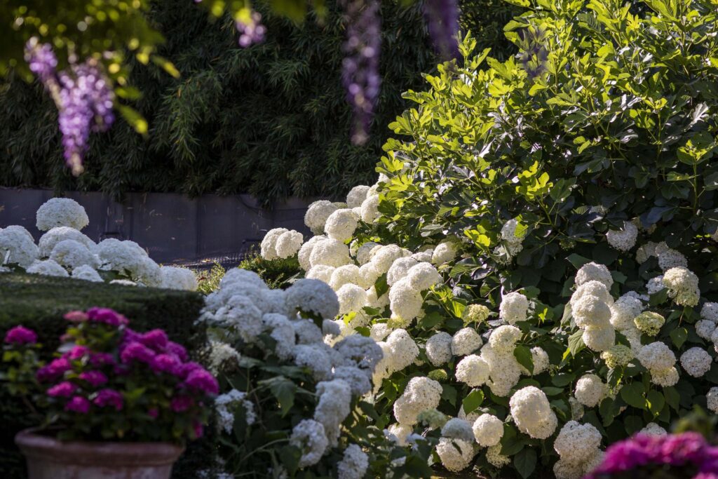 De lente start met de magnolia, en wordt steeds bloemrijker ook als de hortensia’s bloeien en de blauwe regen opkomt.