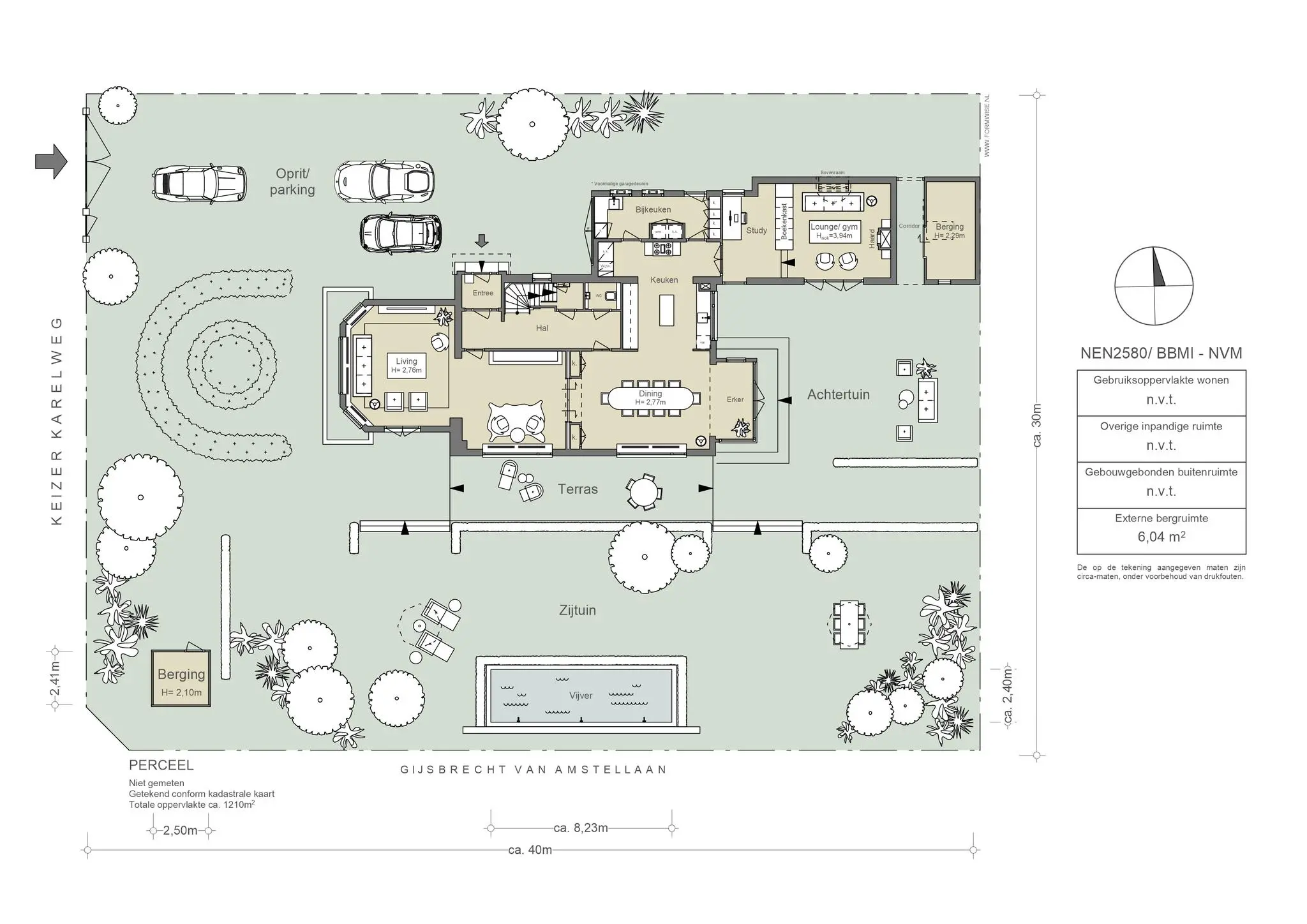 • Parkachtige tuin rondom het huis, hoofdtuin op het zuiden