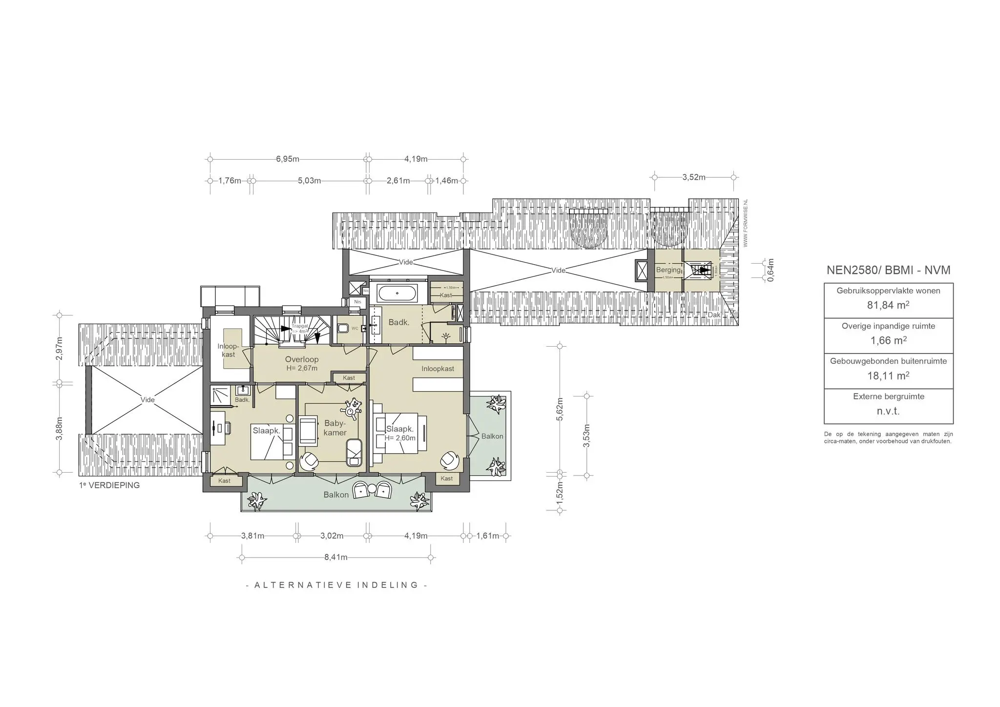 Op de overloop is er een separaat toilet en er nog een inloopkast. Er is een alternatieve plattegrond opgemaakt in de brochure om de mogelijkheden te laten zien. Bekijk de plattegrond van de huidige situatie op www.broersma.nl