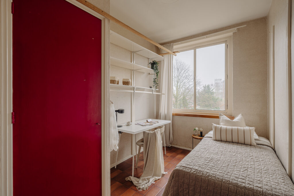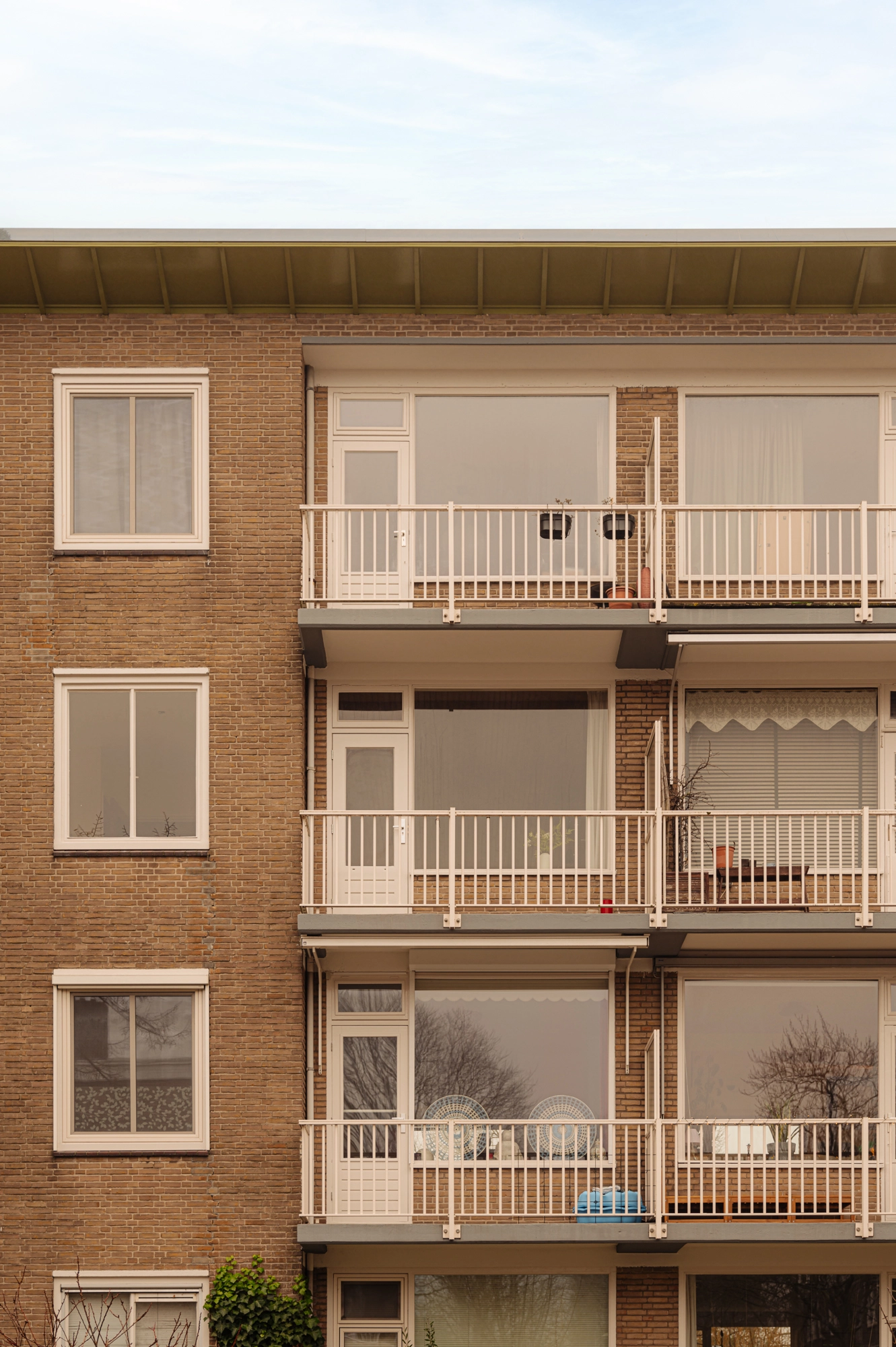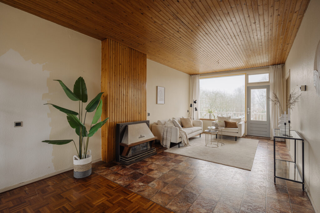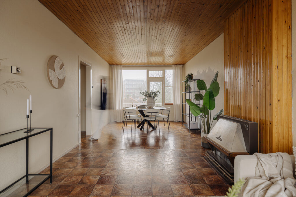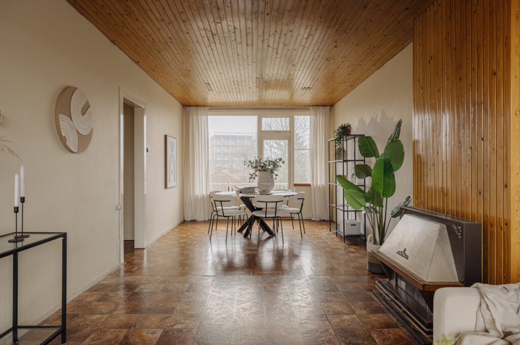 The apartment is situated in a building block constructed in the 1950s. The post-war architectural style is characterized by functional, pragmatic, and efficient design. This is clearly reflected in the rectangular shape of the building and its nearly cubic layout. As a result, the apartment has a very practical and well-organized floor plan. Compared to the 1930s architectural style, the building on Max Planckstraat has no facade decorations, aside from a few ornamental stones. The buildings are simple and modestly executed, which was typical for this period. The minimalist architectural style is not only visible on the exterior but also inside the building. This can be seen, for example, in the design of the stairwell, the storage spaces, and the layout of the apartment. Everything was designed with optimal use of space in mind. Architect Piet Zanstra was the mastermind behind the design of the building block on Max Planckstraat. Zanstra is best known for his designs of studio apartments. Together with architects Giesen and Sijmons, he was a member of Group ’32, a movement heavily inspired by the works of Le Corbusier. This group was considered modernist at the time. In 1954, Zanstra continued independently and returned to elements from his earlier works. This is evident in the functional architecture, choice of materials, and the design of the window arrangements. The property represents an architectural journey back to the 1950s, the era in which it was built.