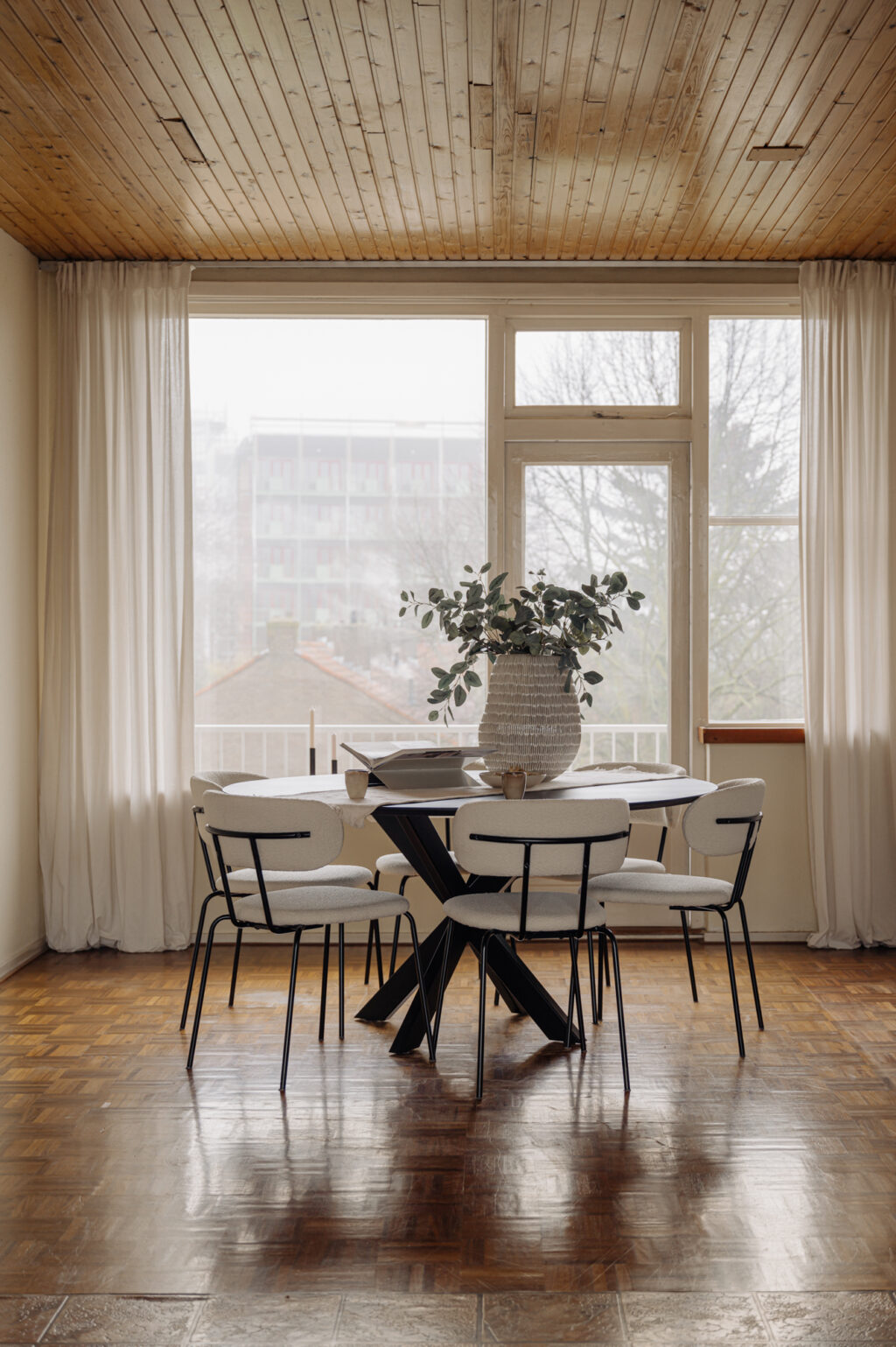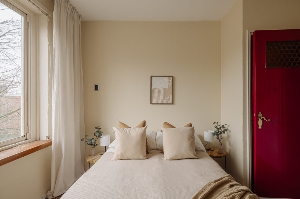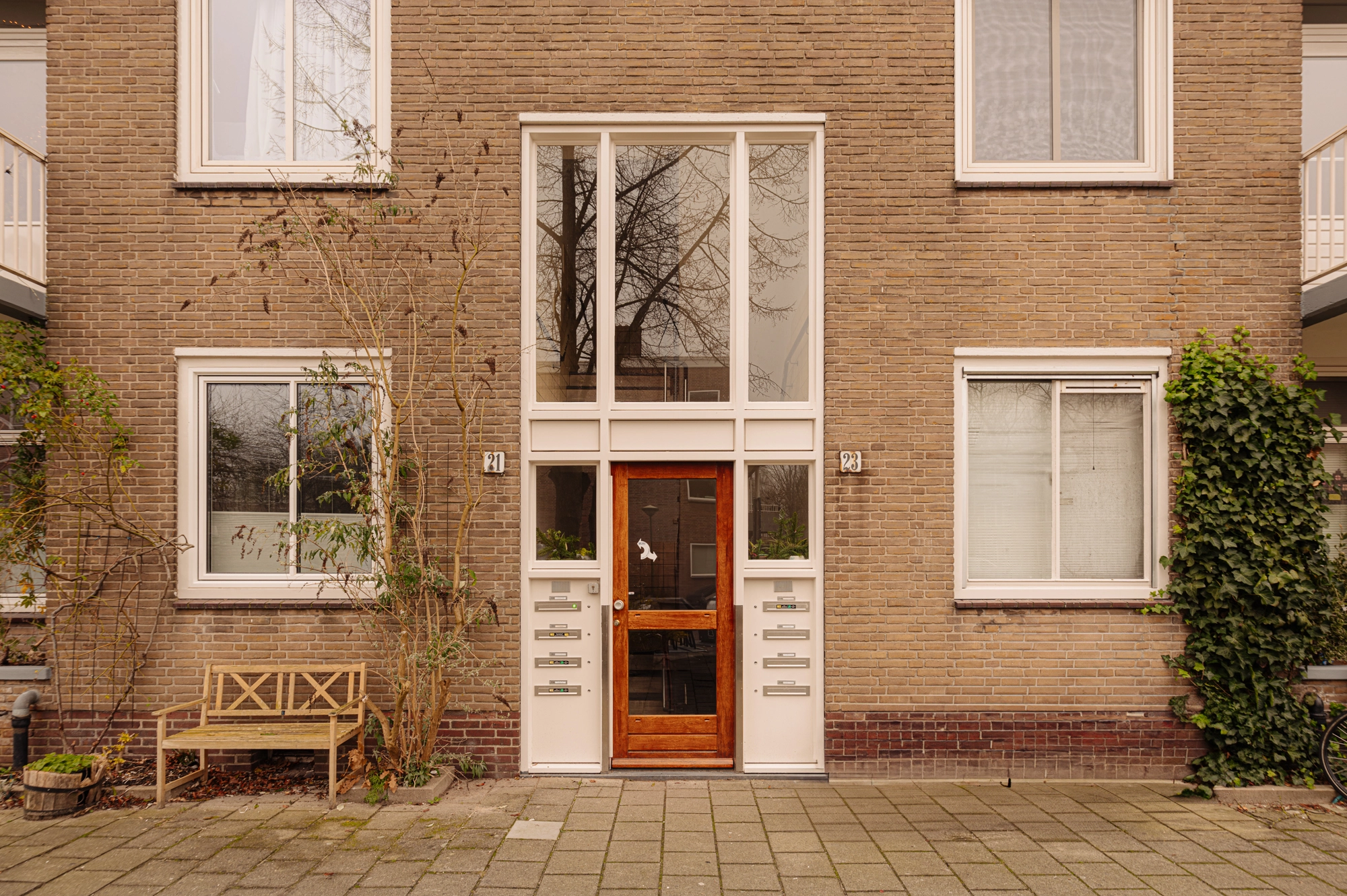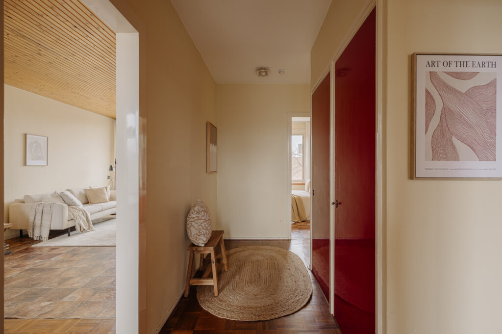 The apartment is situated in a building block constructed in the 1950s. The post-war architectural style is characterized by functional, pragmatic, and efficient design. This is clearly reflected in the rectangular shape of the building and its nearly cubic layout. As a result, the apartment has a very practical and well-organized floor plan. Compared to the 1930s architectural style, the building on Max Planckstraat has no facade decorations, aside from a few ornamental stones. The buildings are simple and modestly executed, which was typical for this period. The minimalist architectural style is not only visible on the exterior but also inside the building. This can be seen, for example, in the design of the stairwell, the storage spaces, and the layout of the apartment. Everything was designed with optimal use of space in mind. Architect Piet Zanstra was the mastermind behind the design of the building block on Max Planckstraat. Zanstra is best known for his designs of studio apartments. Together with architects Giesen and Sijmons, he was a member of Group ’32, a movement heavily inspired by the works of Le Corbusier. This group was considered modernist at the time. In 1954, Zanstra continued independently and returned to elements from his earlier works. This is evident in the functional architecture, choice of materials, and the design of the window arrangements. The property represents an architectural journey back to the 1950s, the era in which it was built.