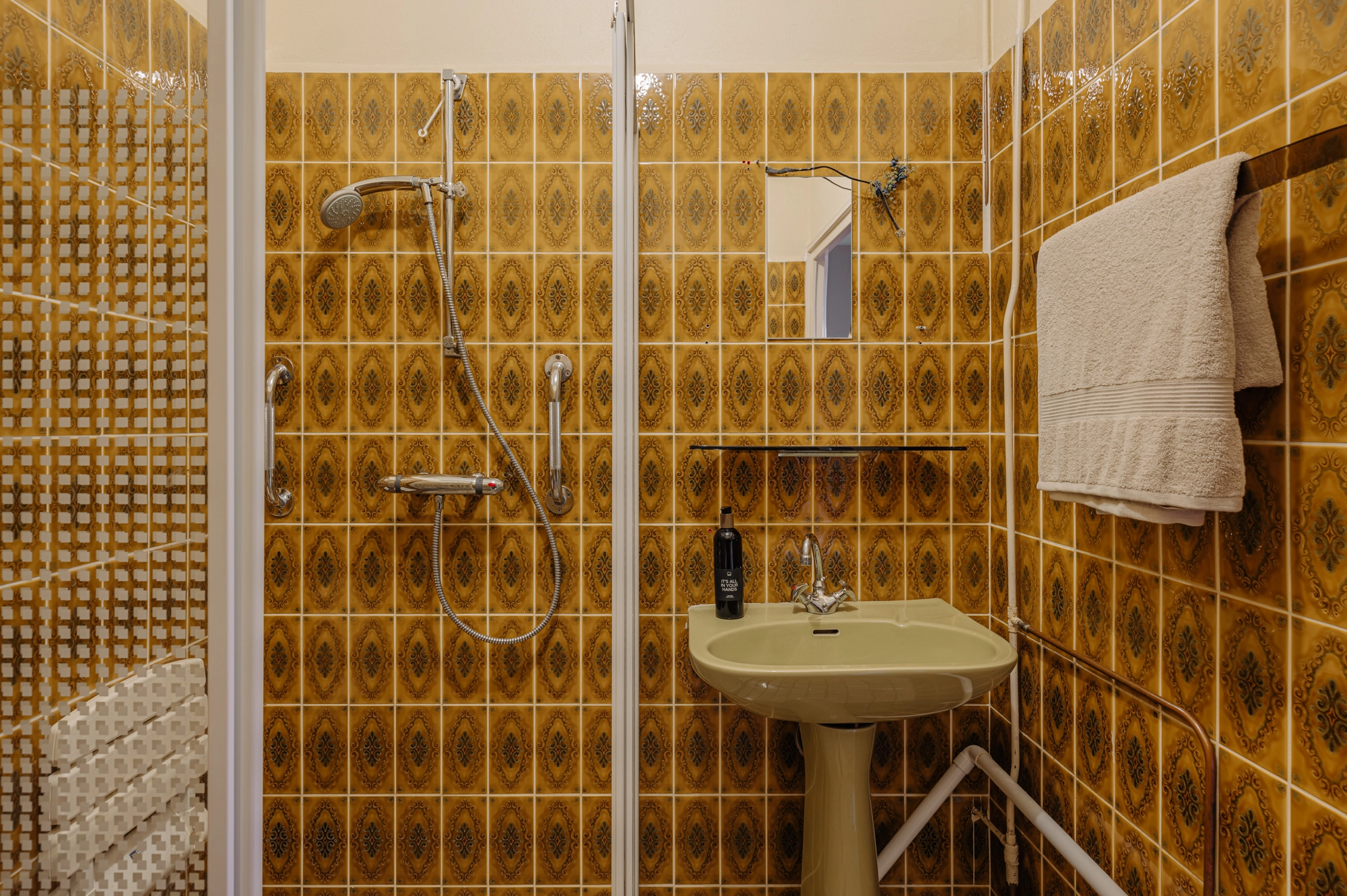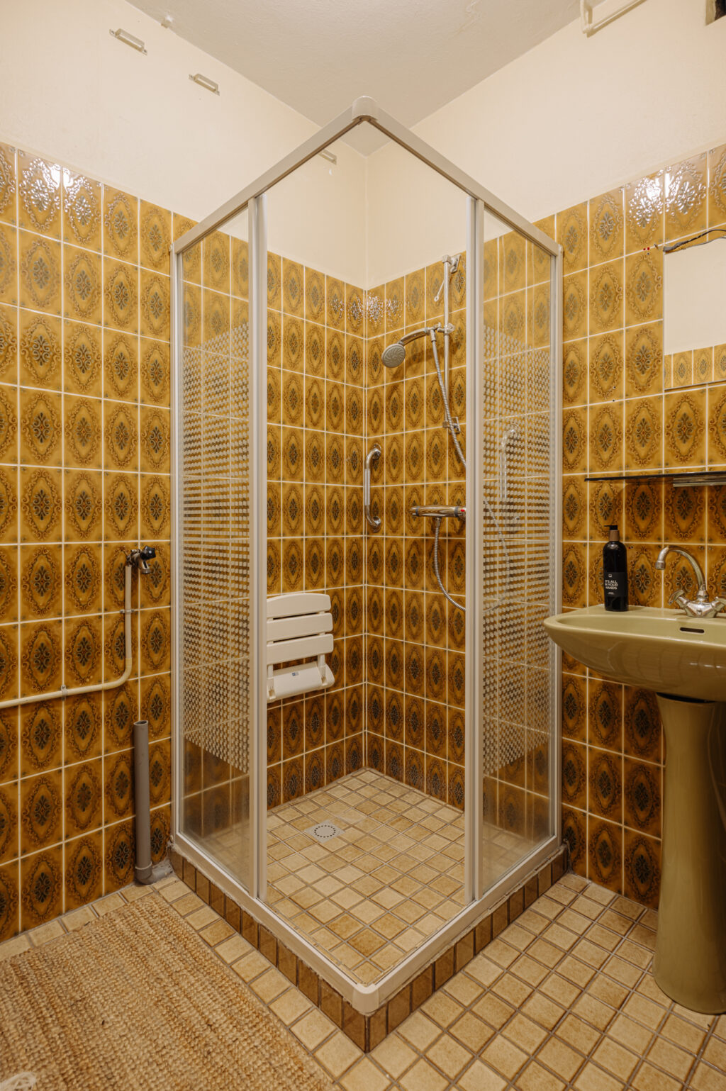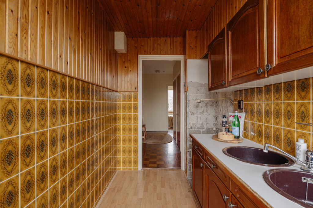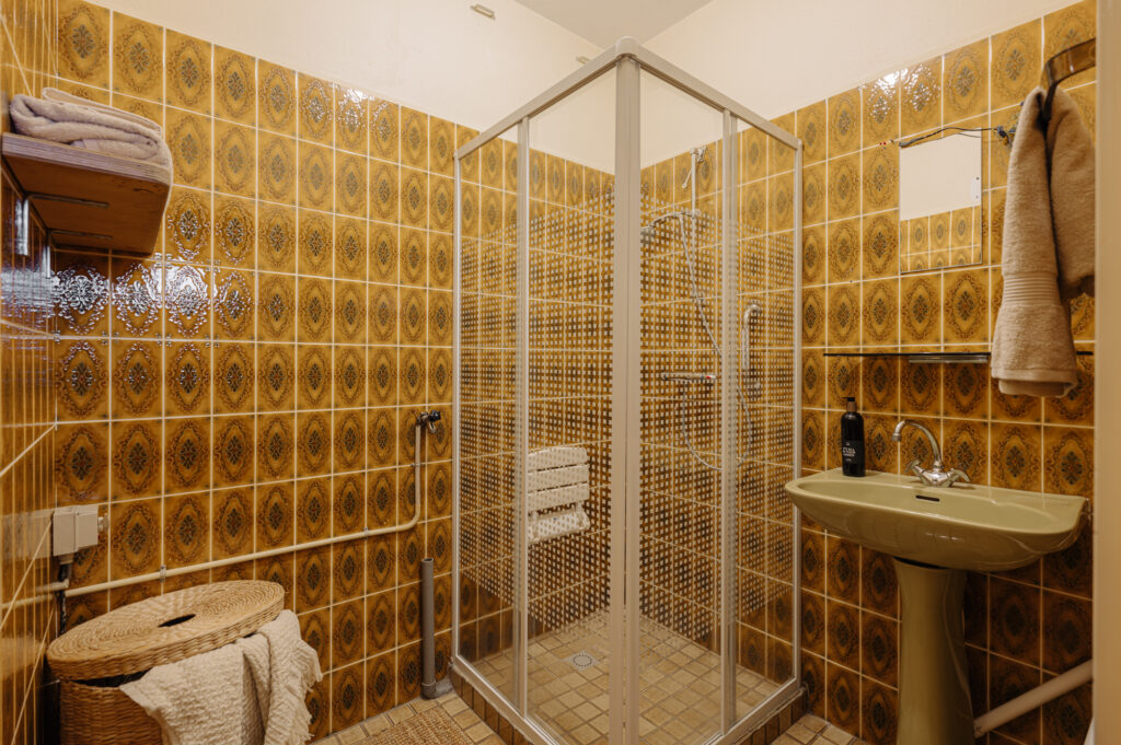 The apartment features two fully-fledged bedrooms, both practical and generously sized. The master bedroom is located at the quiet front side of the apartment, making it the perfect place to unwind. This room offers ample space for a double bed and a large wardrobe. The second bedroom is situated at the rear and overlooks the balcony and the green surroundings. This room can be adapted to suit your needs, whether as a guest room, children’s room, or home office. The bathroom is centrally located within the apartment and has a practical, nearly square layout. This makes it easy to create a modern bathroom during a potential renovation, for example, with a walk-in shower, sink, and washing machine connection.
