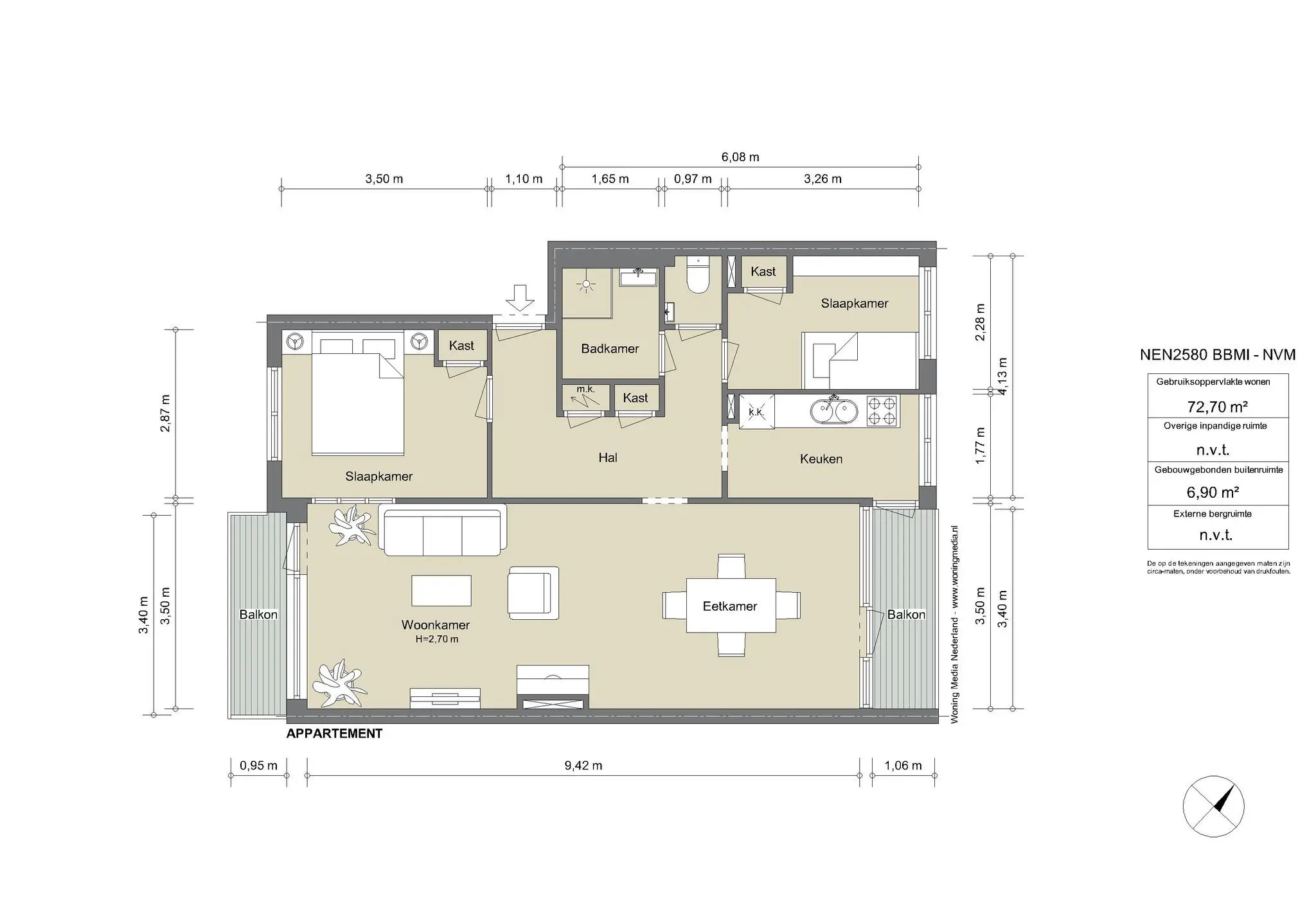 - Two balconies (southwest and east) totaling approximately 7 m²