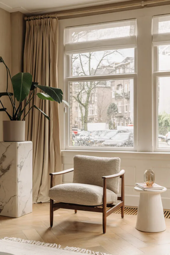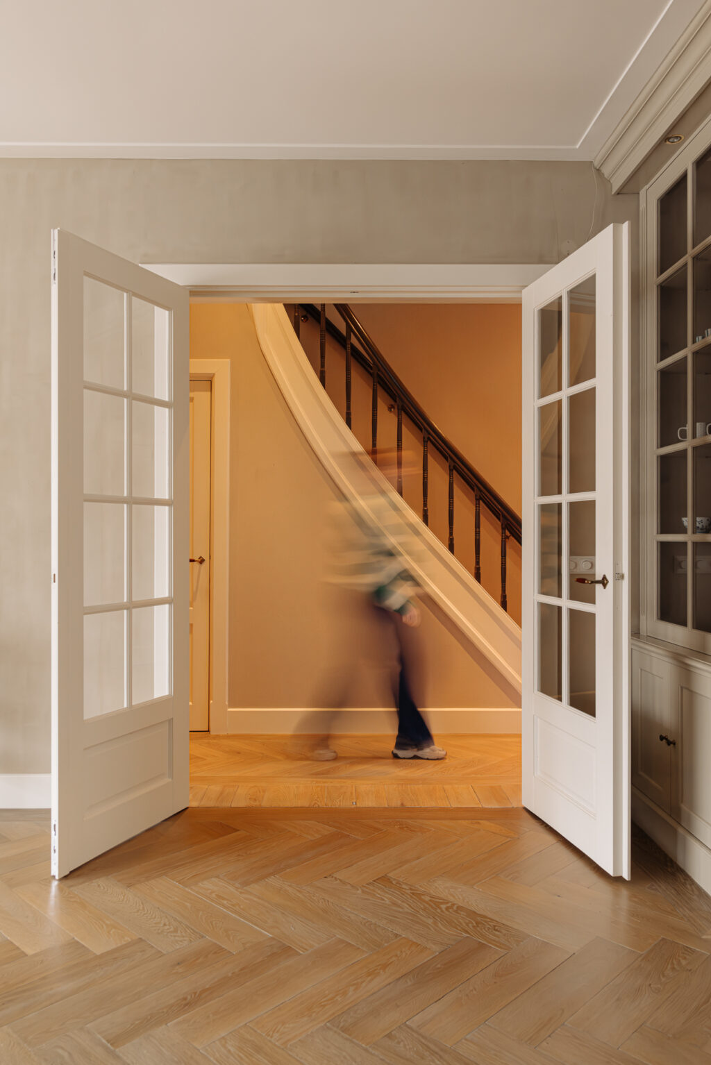 Elke keer als ik dit drie-laags benedenhuis aan de Oranje Nassaulaan 56-hs binnenloop, word ik enthousiast over de details, het uitzicht over het park en de prettige sfeer die het huis uitstraalt. Het benedenhuis heeft een statige uitstraling door zijn omvang en karakter. Wat dit pand bijzonder maakt, zijn de royale afmetingen en de hoge plafonds op elke verdieping. Daarnaast is het perceel met een ruime zij-tuin en een diepe achtertuin aan de Vondelvijver, met uitzicht op het Vondelpark, uniek voor een drie-laags benedenhuis in Zuid. De authentieke stijl van het huis is grotendeels behouden, wat me persoonlijk erg aanspreekt. Een prachtig voorbeeld hiervan is de loggia aan de hoofdslaapkamer, een origineel detail met veel stijlkenmerken. Kortom, dit benedenhuis is het toppunt van wonen in Zuid voor een gezin met opgroeiende kinderen en een liefde voor de stijl en architectuur van het begin van de 20e eeuw.