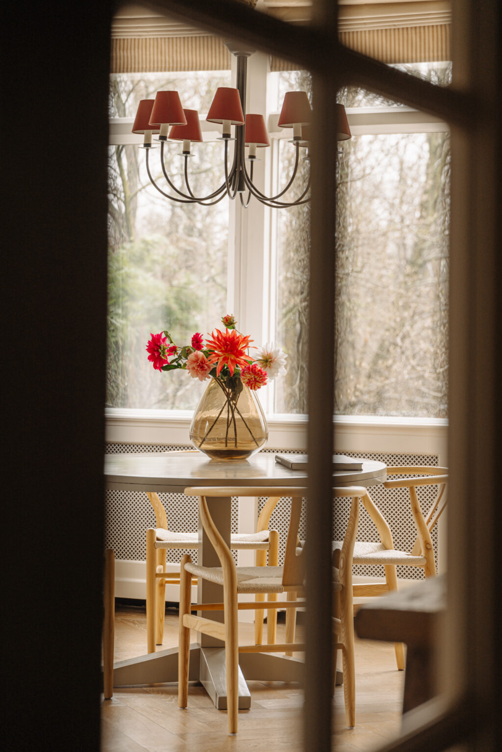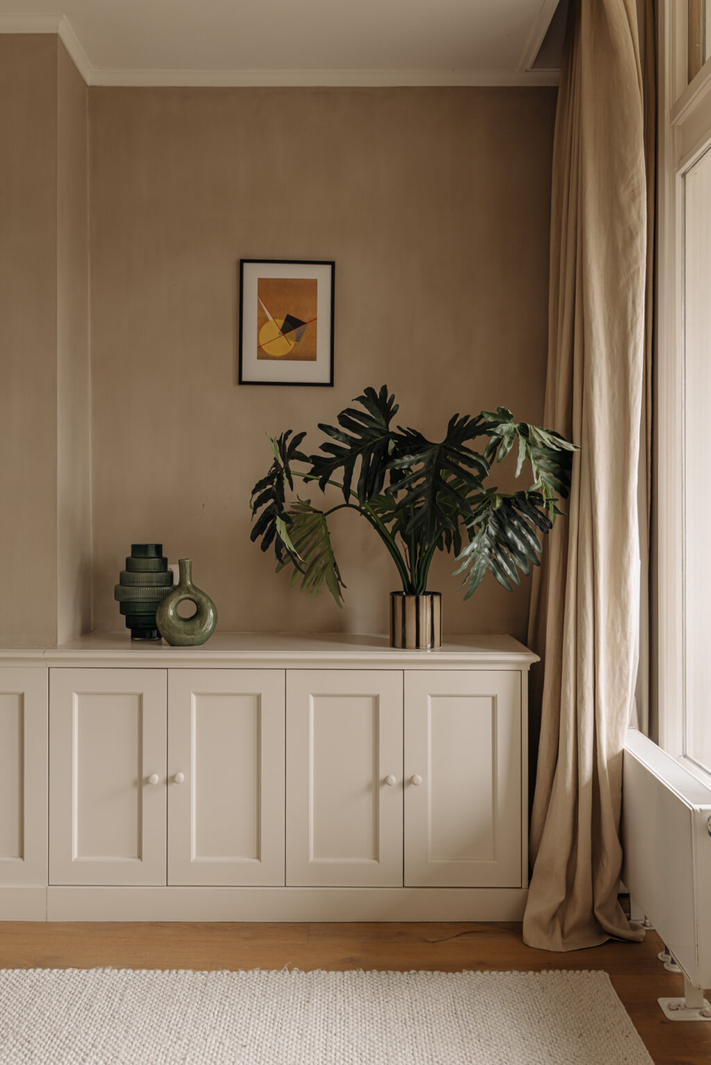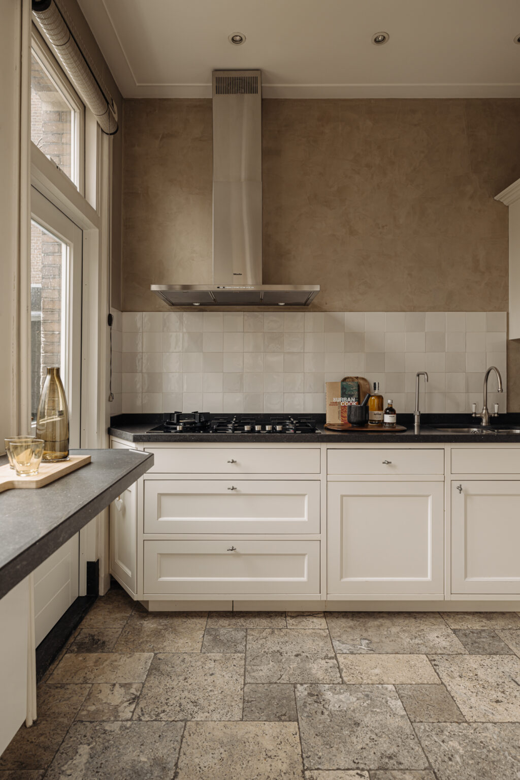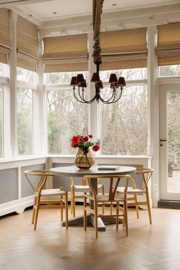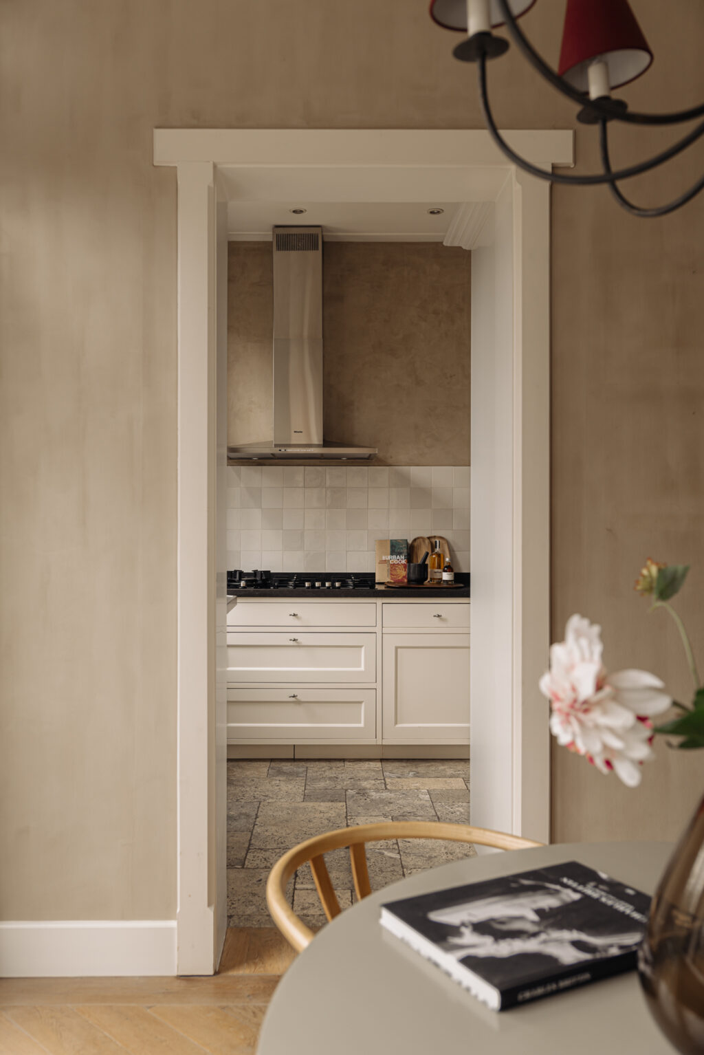 Bij binnenkomst voel je meteen de ruimte en het comfort van deze woning. De royale hal met een tochtportaal zorgt voor een prettige entree. De woonkamer, gelegen aan de rustige straatzijde, strekt zich uit over de volledige breedte van het huis, wat zorgt voor een ruimtelijk gevoel. Extra lichtinval komt binnen via het zijraam, waardoor de sfeer nog aangenamer wordt. Een stijlvolle, op maat gemaakte kastenwand in de sfeer van de oorspronkelijke en-suite zorgt voor een natuurlijke verdeling van de ruimte. Aan de ene kant functioneert deze als boekenkast in de woonkamer, aan de andere kant als servieskast in de eetkamer. De eetkamer zelf biedt volop ruimte om gezellig te tafelen, met een sfeervolle open haard als middelpunt. Grenzend aan de tuin en omringd door grote ramen is deze ruimte heerlijk licht en biedt het een prachtig uitzicht op de tuin en het Vondelpark. De halfopen keuken is van alle gemakken voorzien en heeft een directe verbinding met zowel de eetkamer als de tuin. Hierdoor ontstaat een fijne binnen-buitenbeleving, perfect voor lange zomeravonden of een ontspannen start van de dag. Daarnaast bevindt zich in de hal een apart gastentoilet.