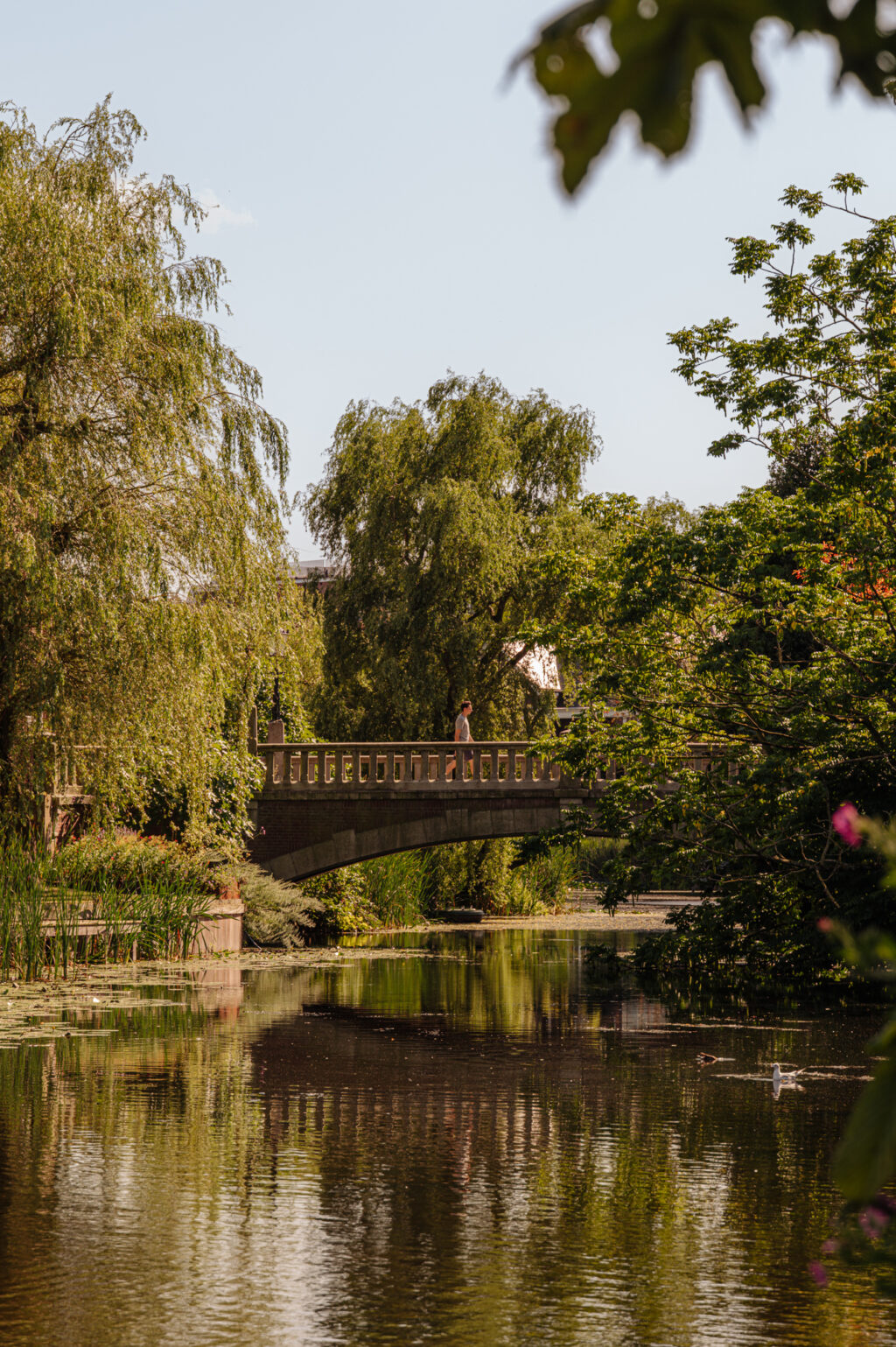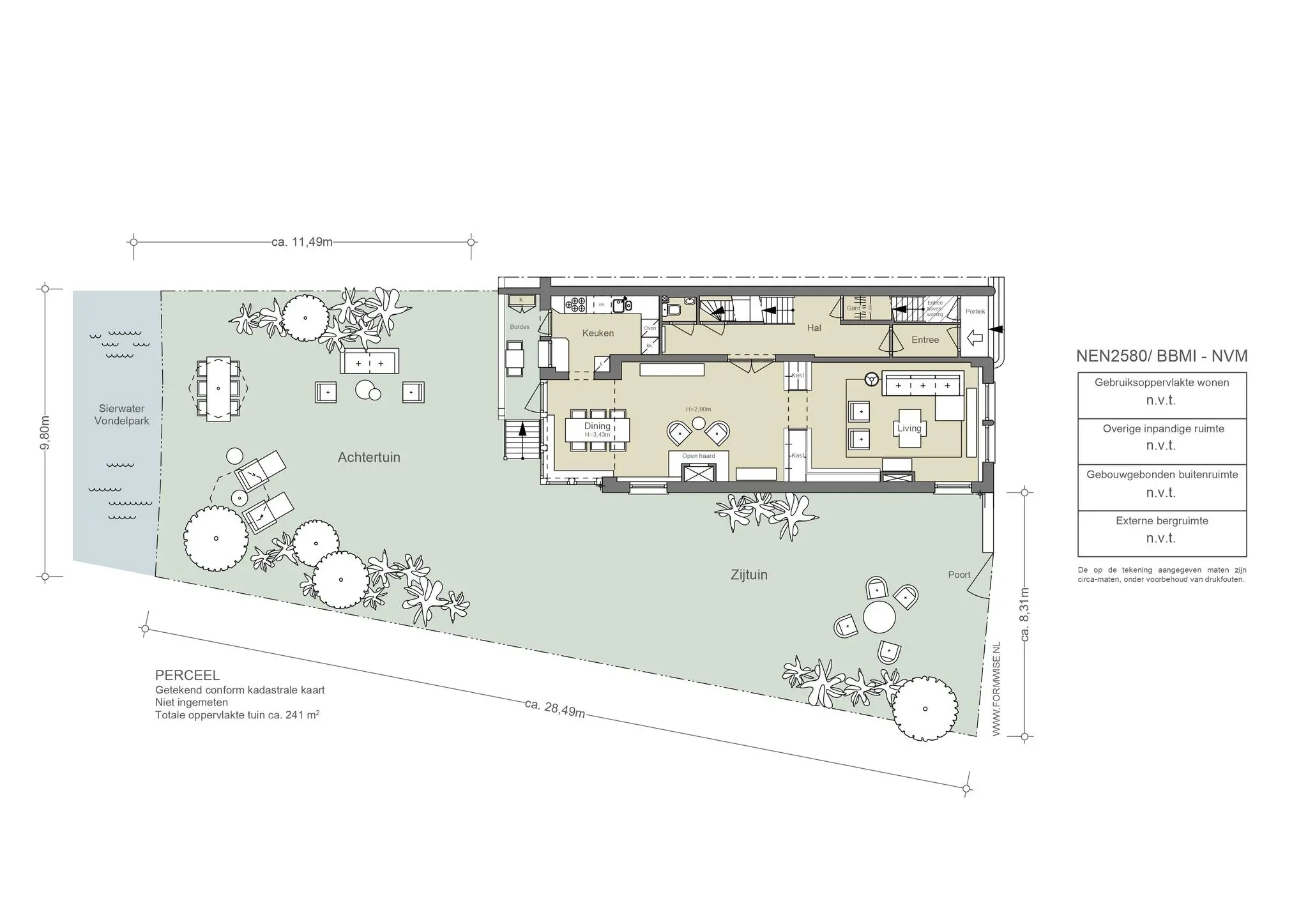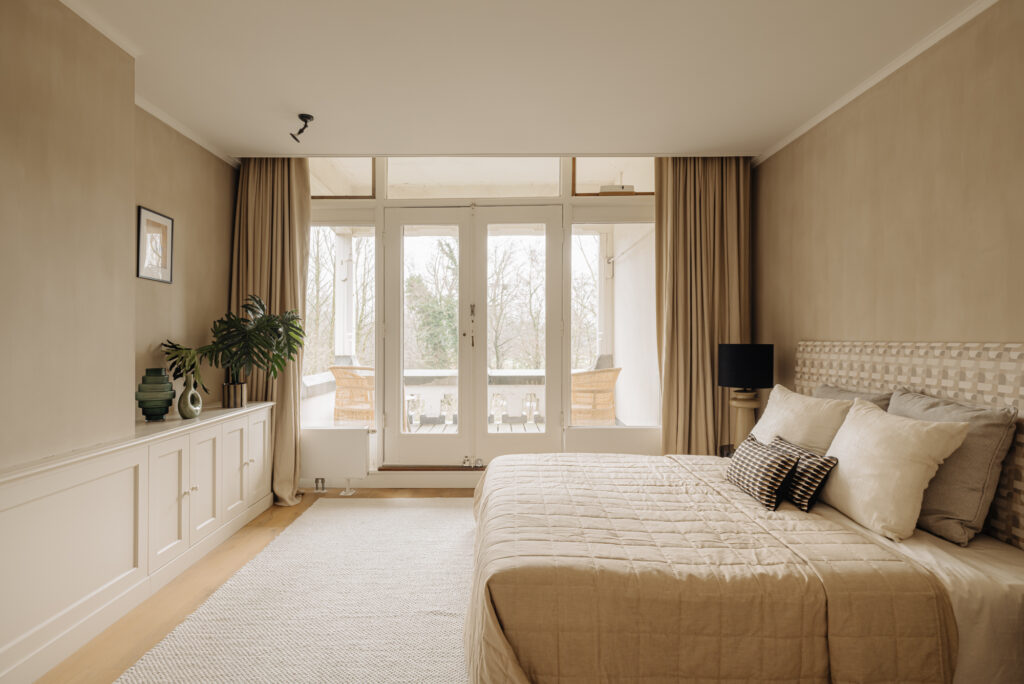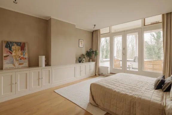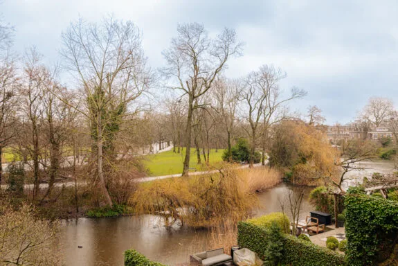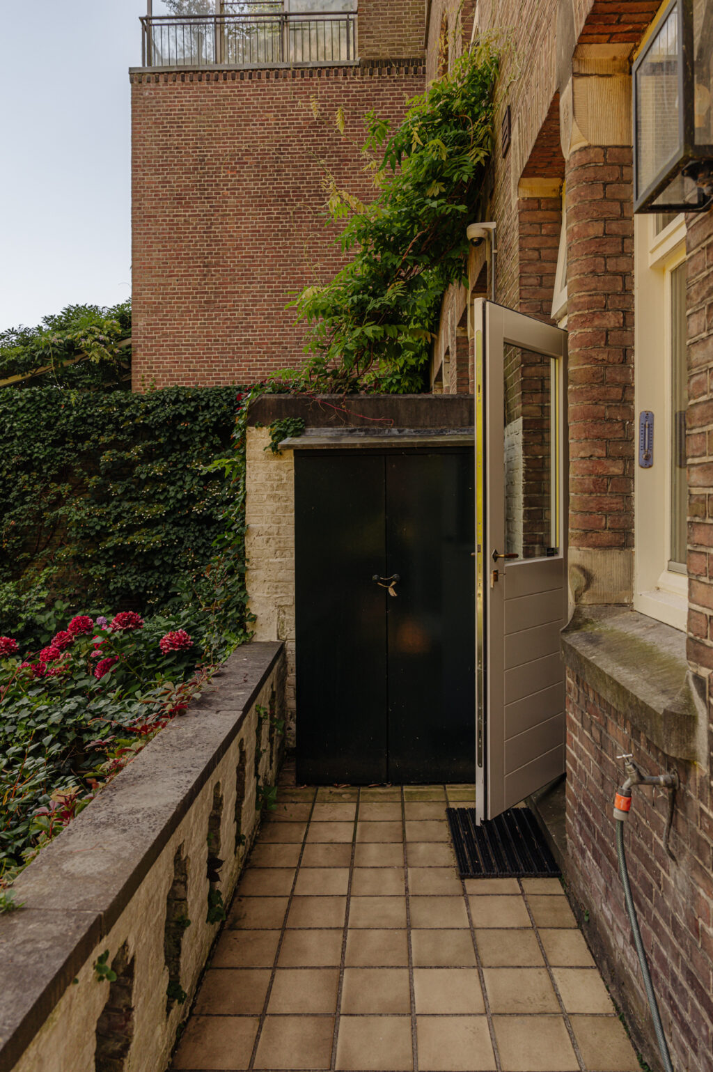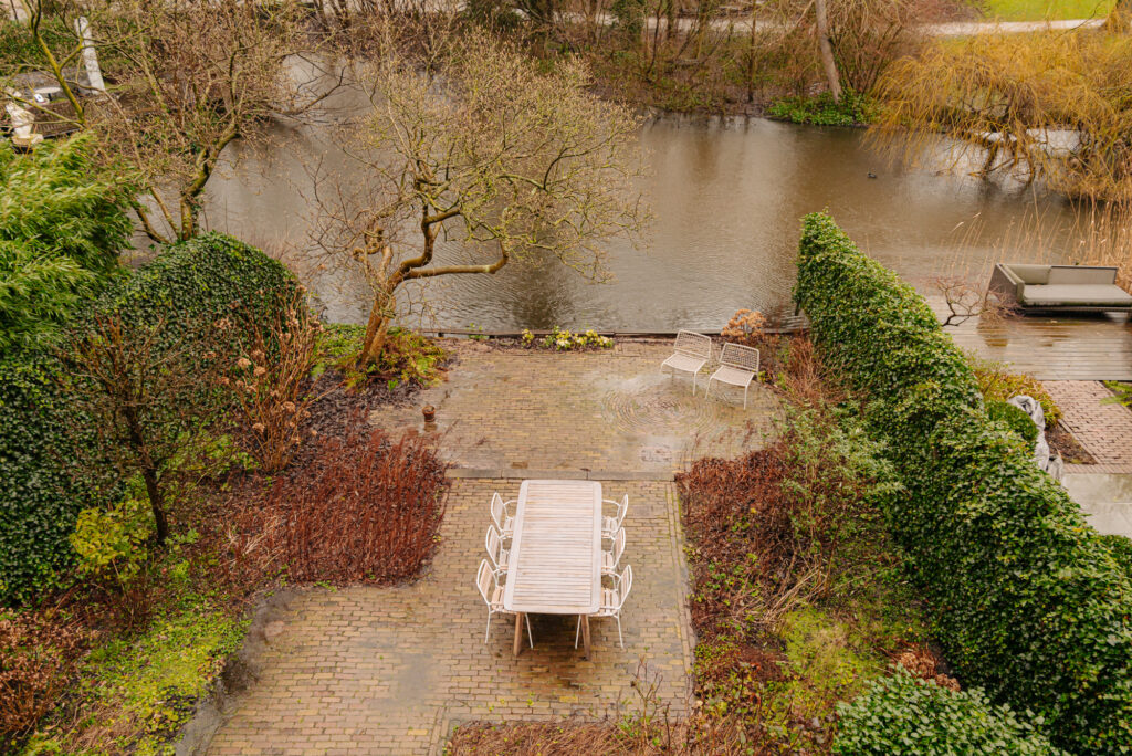 Deze woning beschikt over twee bijzondere buitenruimtes. De loggia bij de hoofdslaapkamer biedt een prachtig uitzicht op het Vondelpark en vormt een heerlijke plek om even tot rust te komen. Daarnaast is er de royale zij- en achtertuin van maar liefst 241 m², direct toegankelijk vanuit zowel de eetkamer als de keuken. De tuin is met zorg aangelegd en biedt een heerlijke mix van zon en schaduw, dankzij de verschillende terrassen. Hierdoor kun je op elk moment van de dag een perfecte plek vinden om te ontspannen of gezellig buiten te eten. Wat deze tuin extra bijzonder maakt, is de directe toegang vanaf de straat. Handig voor het stallen van fietsen of voor tuinwerkzaamheden. Het terras aan het water geeft een vrij en ontspannen gevoel, alsof je midden in het Vondelpark woont – een unieke ervaring in hartje Amsterdam.