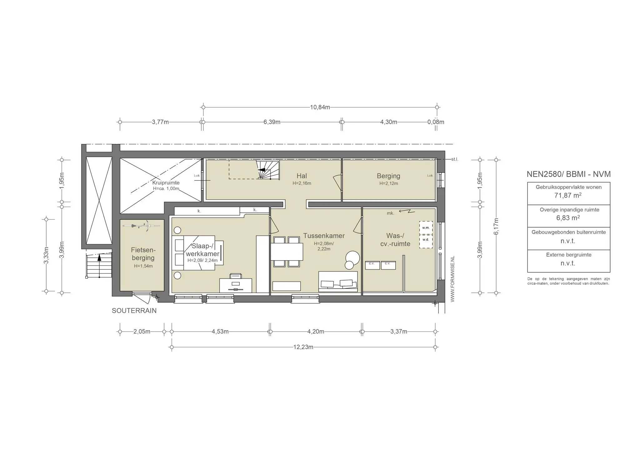 Het souterrain voegt extra functionaliteit en leefruimte toe. Hier bevindt zich een gezellige tv-kamer met een ingebouwde kastenwand en ramen naar de zijtuin, waardoor het een prettige, lichte ruimte is. Daarnaast is er een tussenkamer, eveneens met een raam, die diverse mogelijkheden biedt. Aan de voorzijde bevindt zich een ruime berging met een wasruimte, de opstelling voor de cv-ketel en boiler, en een aparte wijnkelder. Vanuit de tuin is er bovendien een fietsenberging bereikbaar. Dit souterrain biedt volop mogelijkheden om extra kamers en een tweede badkamer te realiseren, afhankelijk van je wensen.