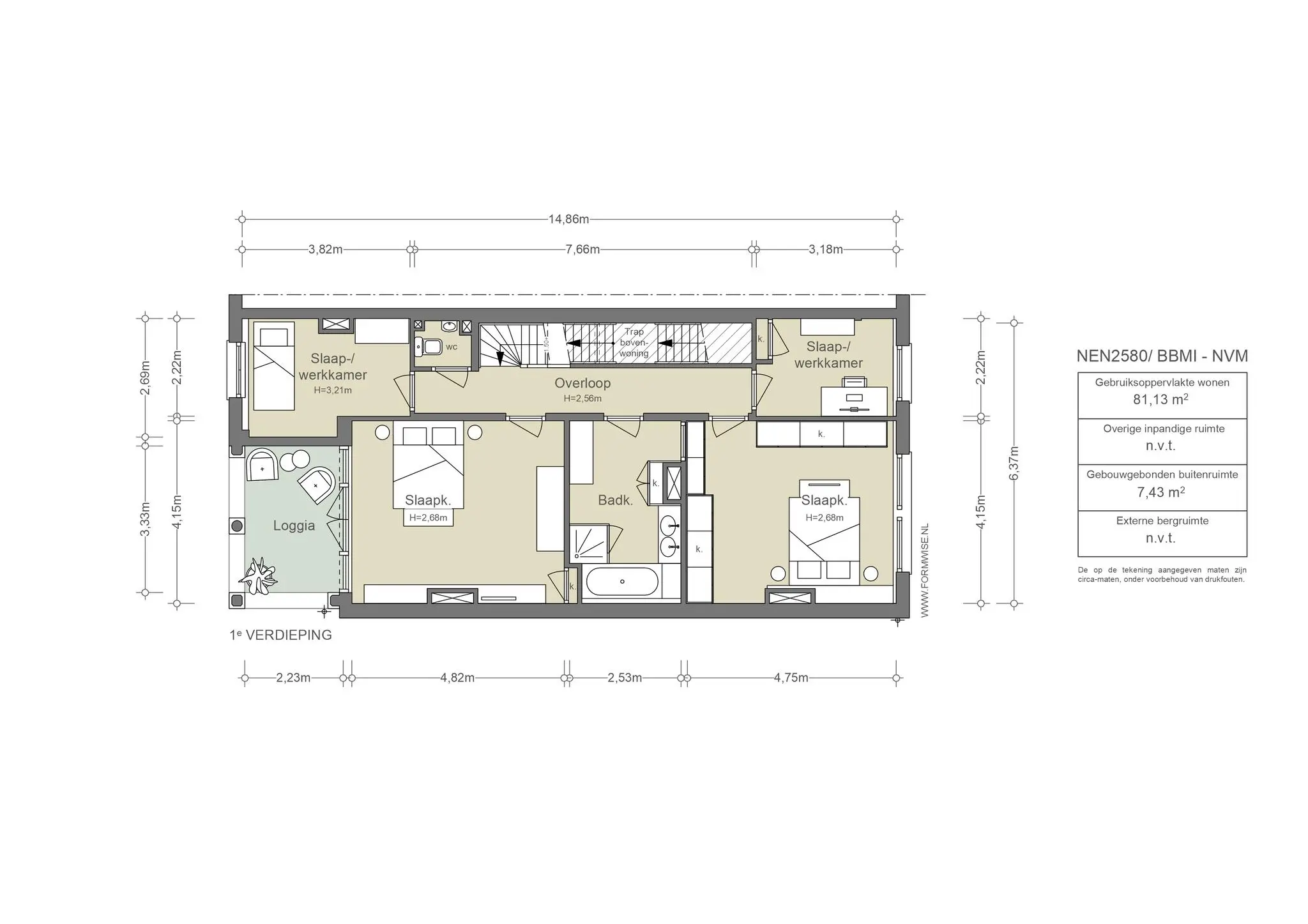 • Balkon/loggia op het noordwesten van circa 7 m²