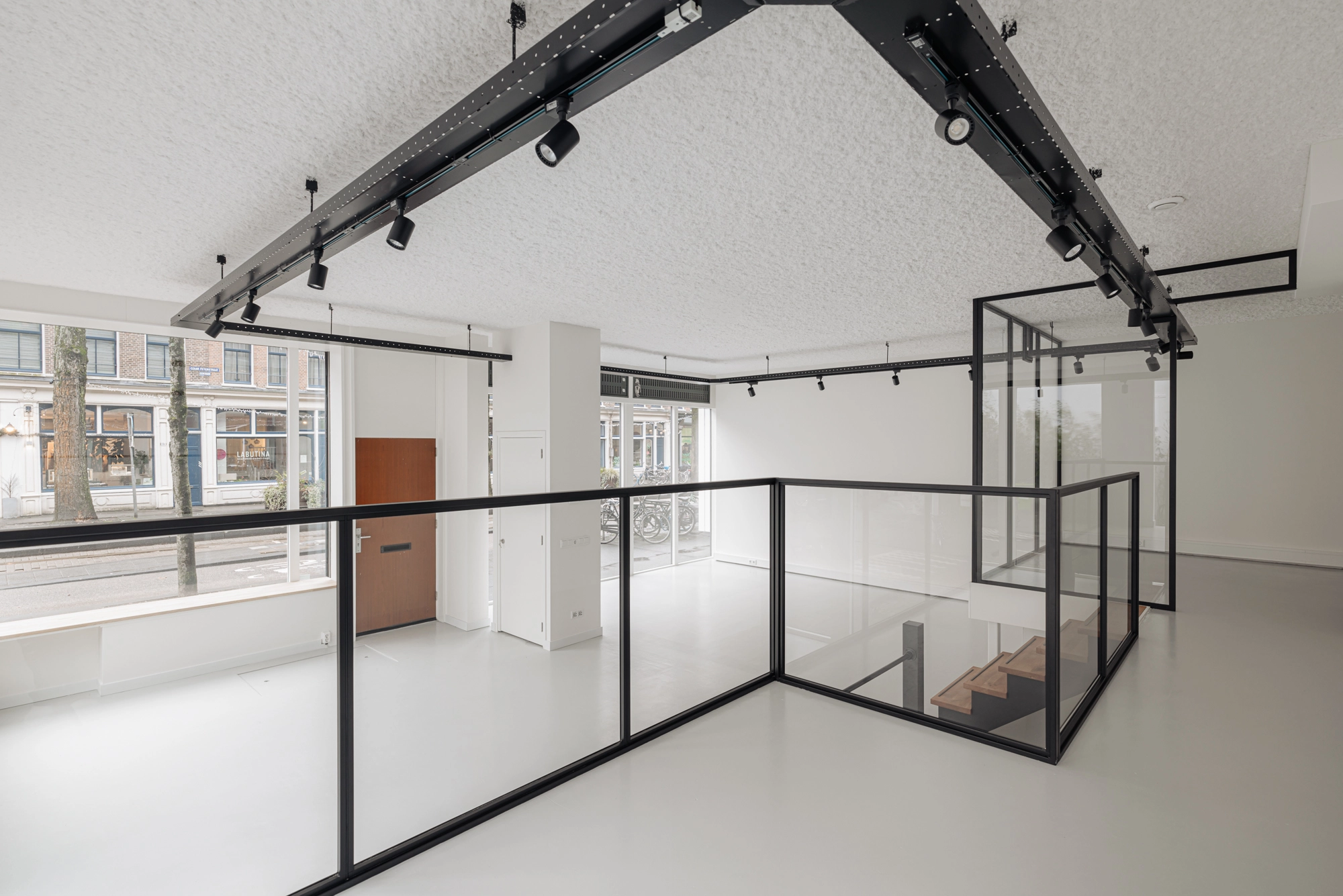 Deze fraaie en zelfstandige kantoorruimte van circa 113 m² heeft een split level indeling (begane grond + vide). Dankzij de hoekligging is er zowel aan de voorzijde als aan de zijkant veel natuurlijke lichtinval via de brede raampartijen. De turn-key kantoorruimte maakt onderdeel uit van een modern woon-/werkgebouw.