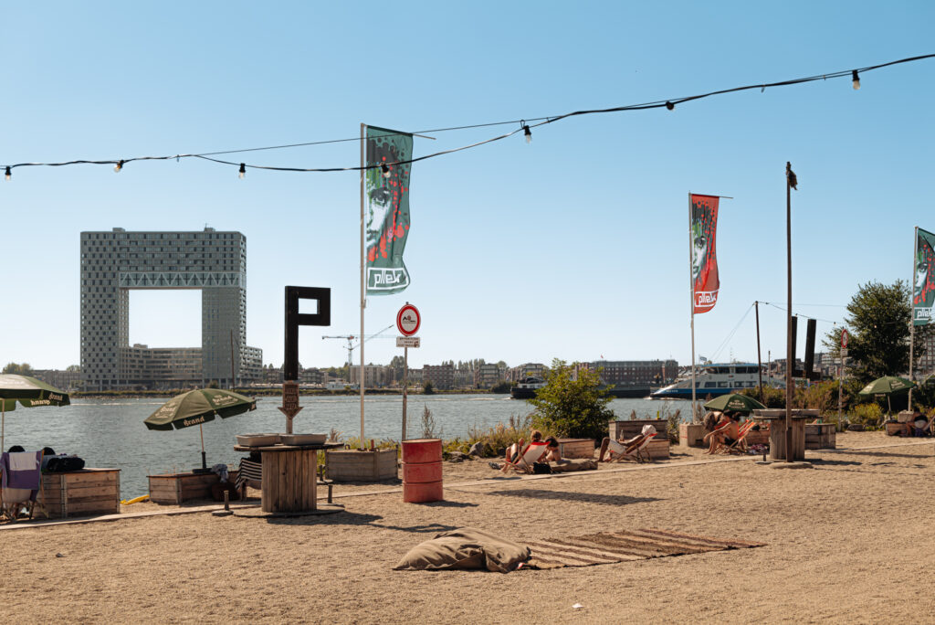 Pllek ligt dichtbij het NDSM-werf in Noord aan het water. Alles wat ze serveren is zo lokaal mogelijk. Het heeft een grote binnen en buitenruimte. In de zomer kan je dan ook lekker chillen aan het water met blote voeten in een strandstoel of liggend in een zitzak ervaar je een eilandgevoel. De keuken is de hele dag open voor ontbijt, lunch en diner. Neem bijvoorbeeld de gestoomde makreel met dille-mierikswortel, zoetzure groenten en gefrituurde kappertjes of ga voor een groente tajine met herfstgroente, parelcouscous, harissa, dukkah, zhug en een rodekoolsalade. Geregeld zijn er bij Pllek yogasessies, live muziek optredens en andere evenementen.