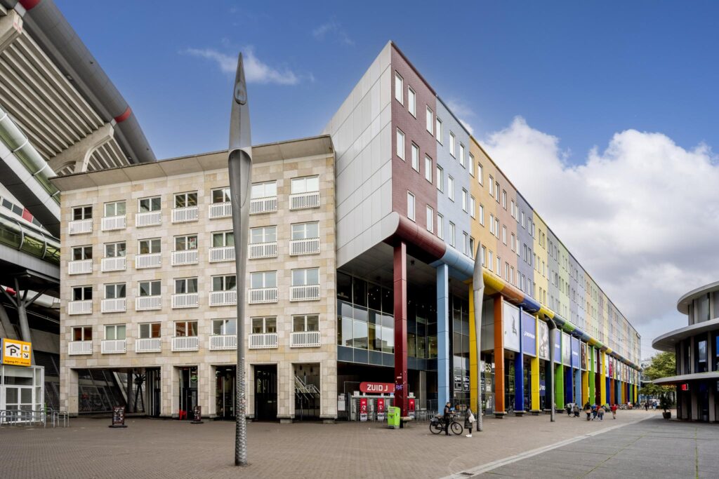 Rainbow Offices is ontworpen door Sjoerd Soeters van PHP architecten en gebouwd in de periode 1997-2000 door BAM & Ballast Nedam. Om het bestaande tekort aan warmte en begrenzing te compenseren is gekozen voor het ontwerp van een kleurige straatwand die uit kleinere delen is samengesteld. De verschillende kleuren maken het tot een abstract geheel. Typerend is de kleurrijke zuilengang waardoor bezoekers beschut de winkels, kantoren, het transferium en station kunnen bereiken.