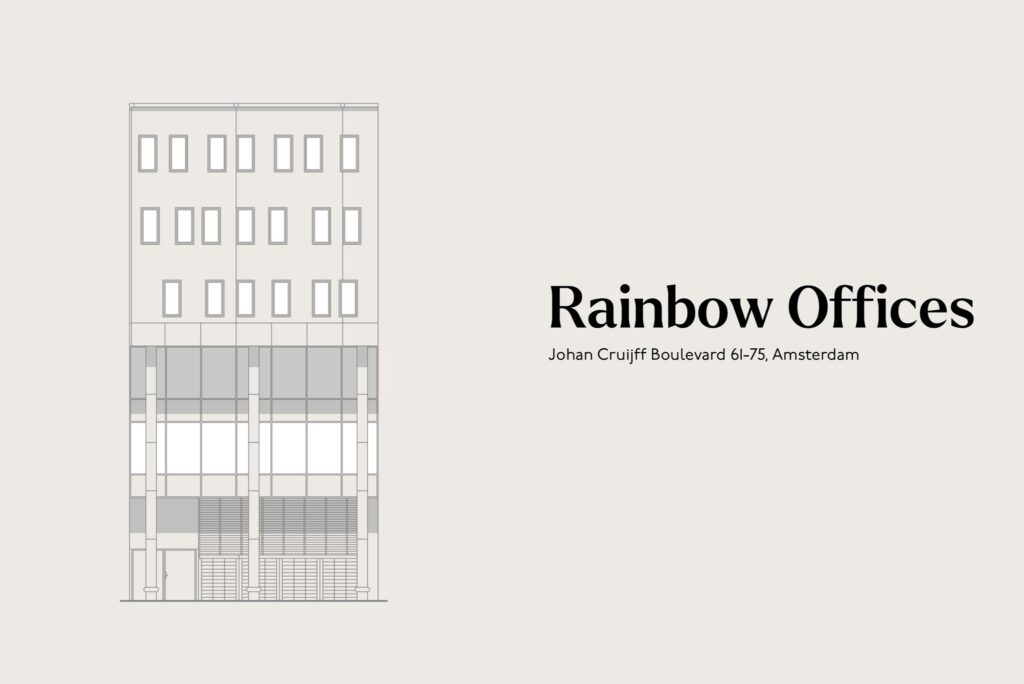 Rainbow Offices is gelegen aan de Johan Cruijff Boulevard 61-75 en is een multi-tenant kantoorgebouw met in de plint diverse grote winkels waaronder een MediaMarkt en Decathlon. In dit gedeelte van Rainbow Offices zijn diverse representatieve bedrijven gevestigd zoals PsyQ i-spy, De Kerk Vis Niekus B.V. en StudioZoost. In het kenmerkende gebouw direct naast de Johan Cruijf ArenA is een kantoorruimte beschikbaar op de eerste verdieping. De ruimte is circa 619 m² VVO. Deze wordt in gerenoveerde casco staat opgeleverd. Het kantoor is toegankelijk vanuit een gezamenlijke en representatieve entree, direct naast de Zuidingang van de ArenA. Vanwege haar ligging op loopafstand van treinstation Amsterdam Bijlmer ArenA is de bereikbaarheid middels openbaar vervoer uitstekend. Eveneens zijn er voldoende parkeermogelijkheden in diverse nabijgelegen parkeergarages.