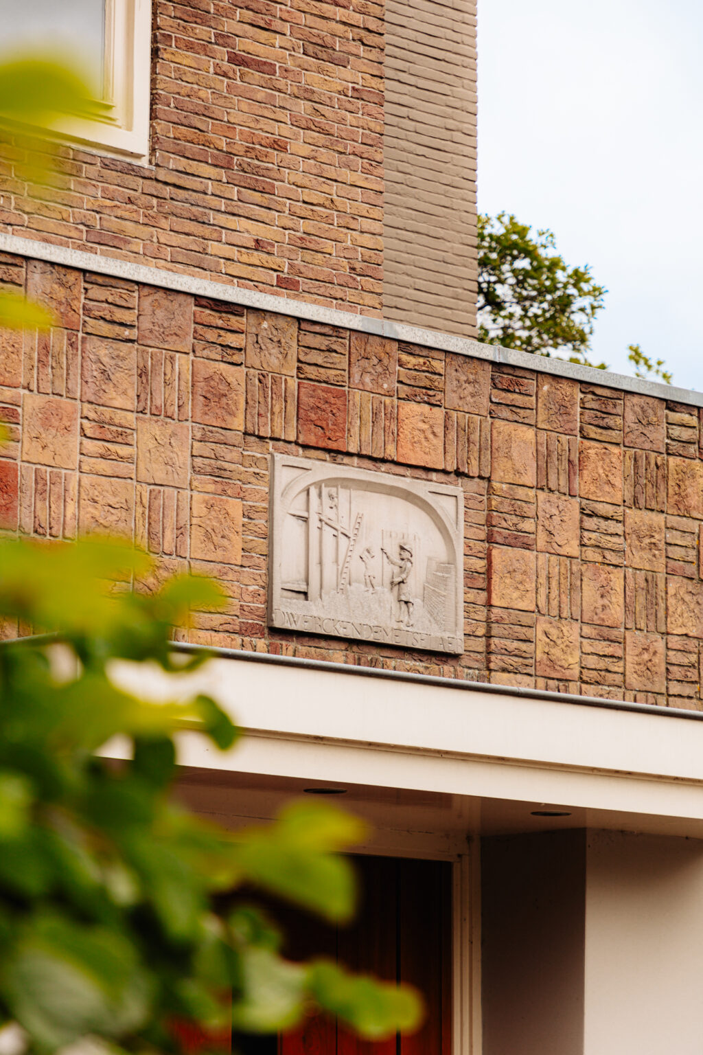 Kenmerkend voor de villa is de gevelsteen welke boven de ingang is geplaatst. De steen, oorspronkelijk uit 1670, is afkomstig van een pand aan het de voormalige straat Dwars Klooster. Dwars Klooster lag op de plek waar nu de Kalverpassage is gelegen.
