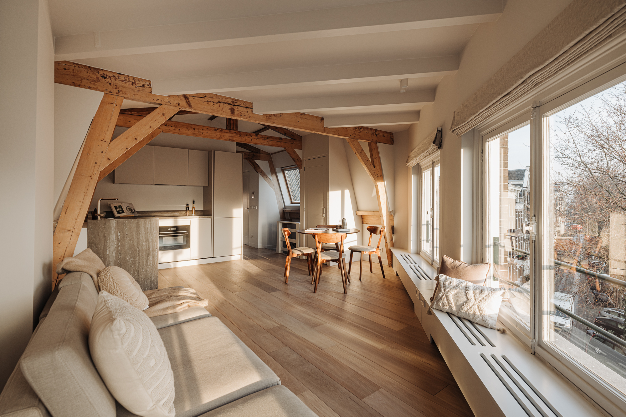 Karakteristiek appartement met uitzicht op de Magere Brug.