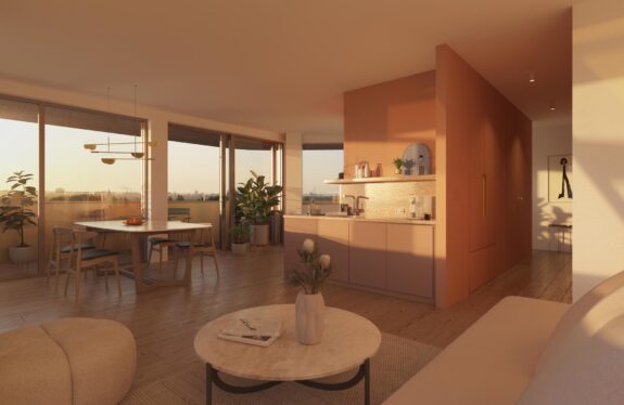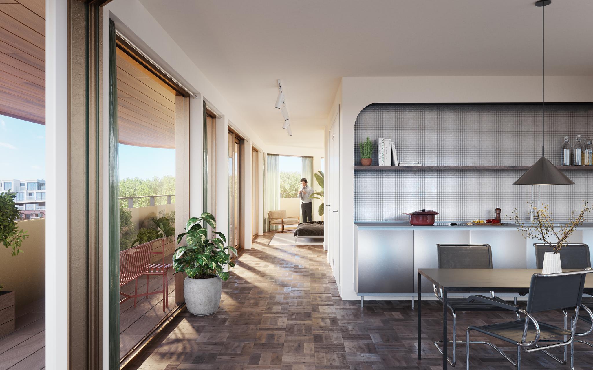 Op de kopse kant van de toren van Elements, op de zesde verdieping komt City Loft 6.1 van ca. 61 m2.