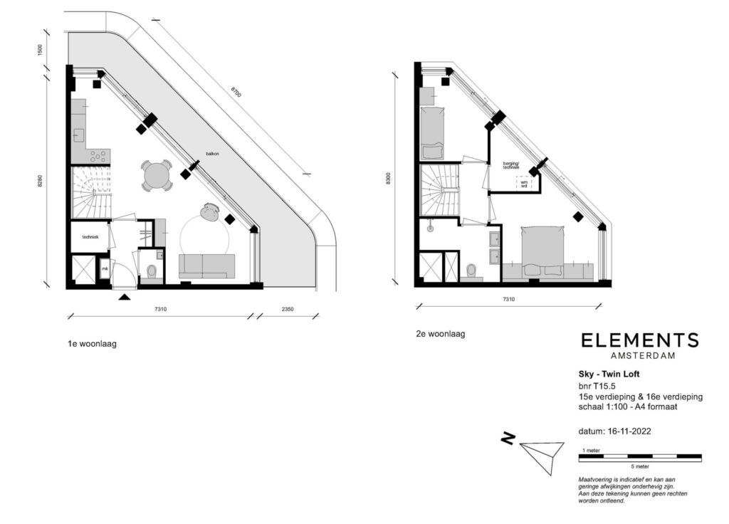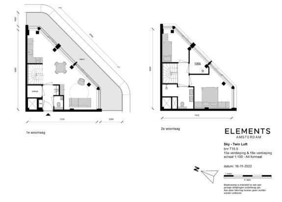 De Sky Twin Loft bevindt zich in de top van de toren, waar alles samenkomt wat Elements bijzonder maakt. Met een geweldige ligging op het zuiden heb je uitzicht op de Amstel én het park én de skyline van Amsterdam. Je geniet van spectaculaire uitzichten, aangenaam zon- en daglicht en een zachte wind. De Twin Lofts zijn naar eigen wens in te richten en hebben de mogelijkheid tot het toevoegen van een vide over de dubbelhoogte van de verdiepingen.
