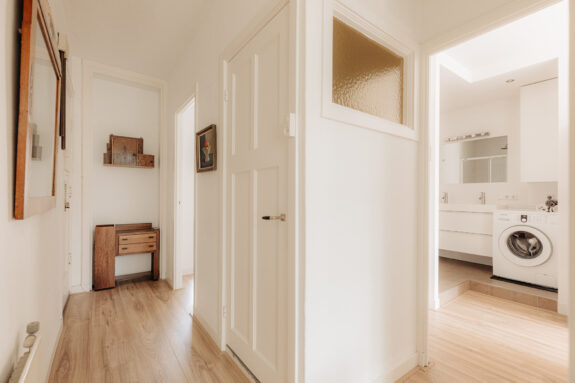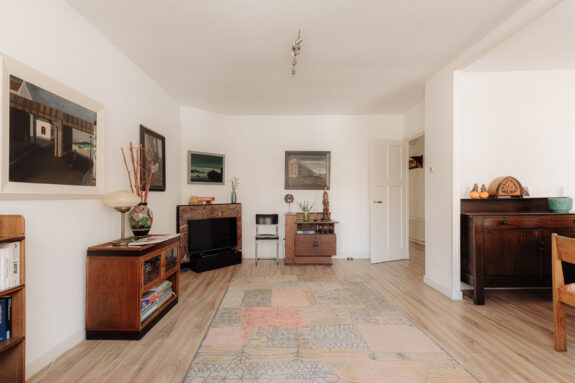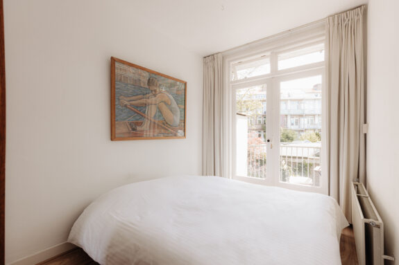 Bright 3-room apartment of 58 sqm with private entrance, located on the second floor of a characteristic 1930s building block. The apartment has a bright living room at the front and a closed kitchen and two bedrooms at the rear. The main bedroom has an en suite bathroom. The kitchen and both bedrooms have access to the sunny balcony at the rear.