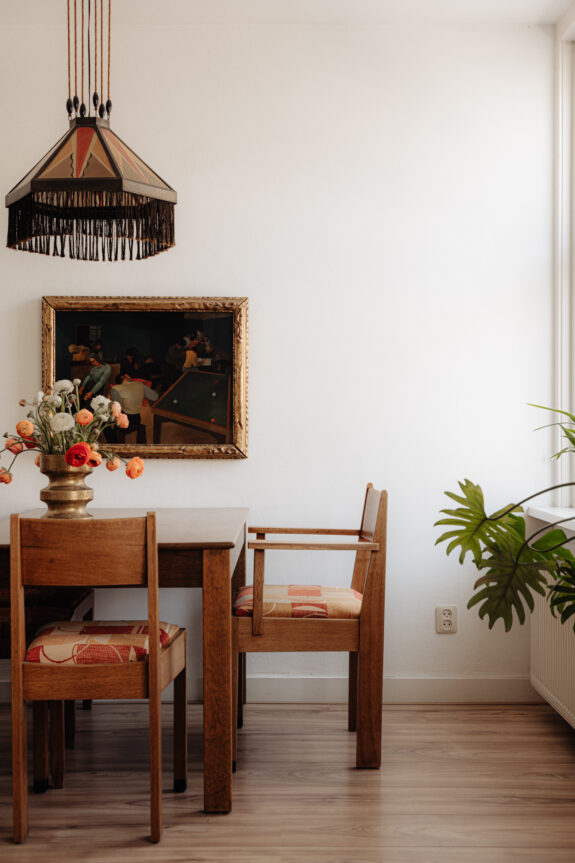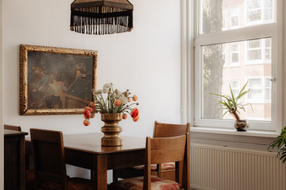 Bij Pipes & Beans in Amsterdam-Zuid vind je een gezellige eettafel, een comfortabele bank en twee leunstoelen. Een vrolijke hond genaamd Curly snuffelt nieuwsgierig om je heen, waardoor het voelt alsof je te gast bent in de woonkeuken van Maikel van Rooij (41). Dit was precies het sfeertje dat de eigenaar voor ogen had. Hier draait alles om het goede leven met koffie. De rest van het interieur is een charmante mix van tweedehandsvondsten van de lokale kringloopwinkel. Een kopje koffie kost €2,50 en voor €4 krijg je er zelfgemaakte taart of een tosti bij.