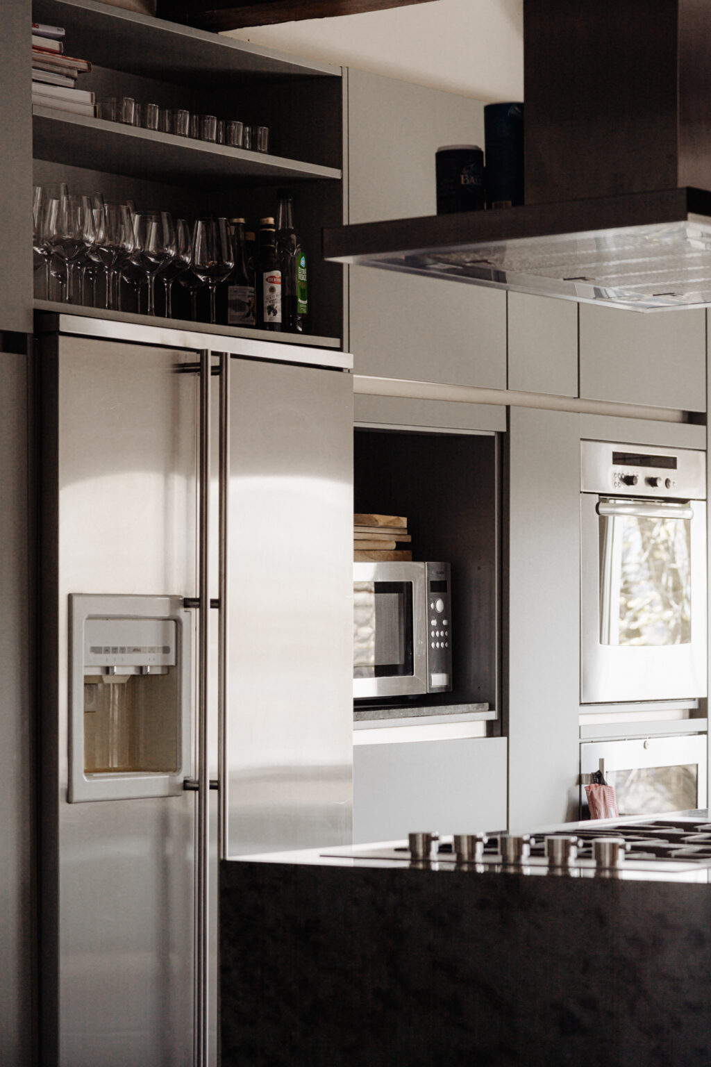 Huis Odeon - Dit appartement op derde en vierde verdieping beschikt over een fraaie woonkeuken met kookeiland en diverse inbouwapparatuur, waaronder een marmeren aanrechtblad. De ruime eetkamer biedt voldoende plaats om te dineren en te borrelen. Aan de achterzijde van de woning is er een zitkamer met een centrale gashaard en uitzicht over het binnenterrein van de panden aan de Amstel en de Keizersgracht.