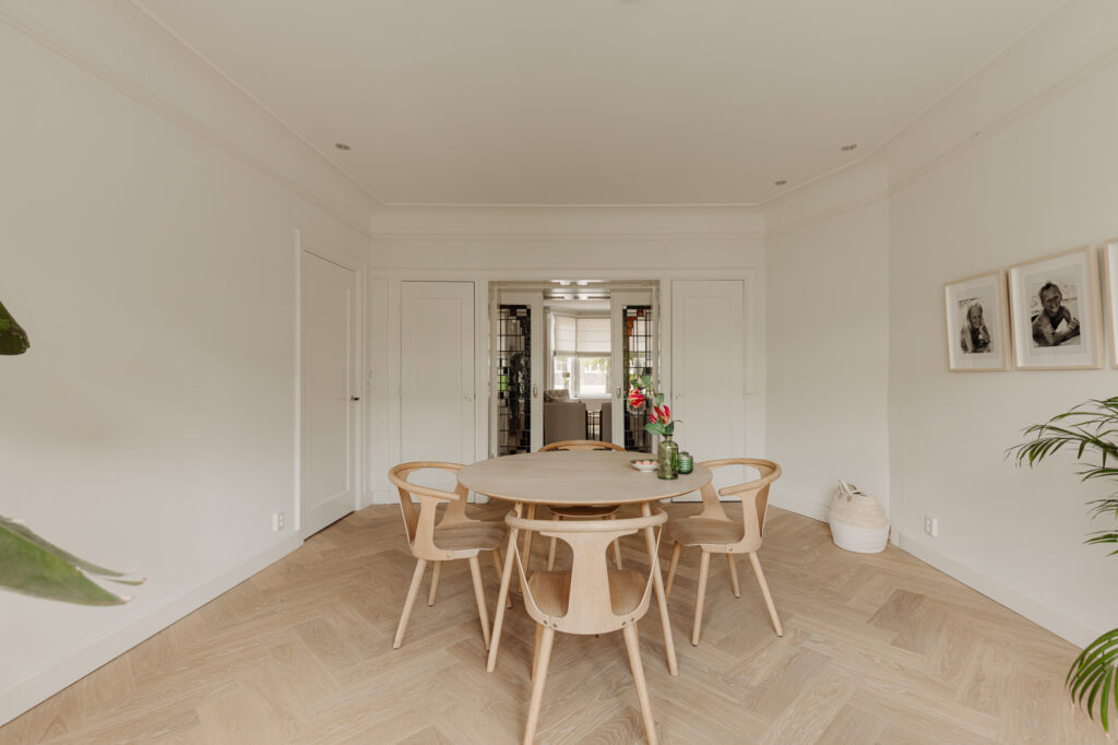The apartment is situated in one of the quieter sections of the charming Beethovenstraat. The rear of the apartment overlooks expansive gardens and enjoys abundant natural light due to the low-rise buildings on Holbeinstraat. I find these homes particularly appealing for their well-thought-out layout, featuring a traditional en suite design and above all, an abundance of living space. The French doors at the rear invite sunlight to flood in, instantly creating a sense of home.