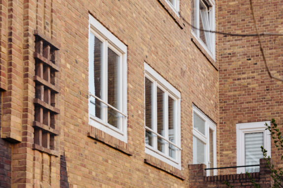 De gevels zijn gebouwd met kenmerken van de verstrakte Amsterdamse School. Hoewel de hoofdopzet sober en rechtlijnig overkomt, zijn de baksteendetails van een grote zorgvuldigheid en verfijning. Vooral het ragfijne vlechtwerk van het verticale metselwerk ter plaatse van de portieken dwingt bewondering af. Bij de voordeuren zien we stoere granieten stootborden in aparte vorm. De Bestevaèrstraat heeft een architectonische orde 2.