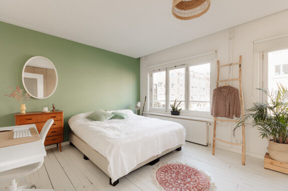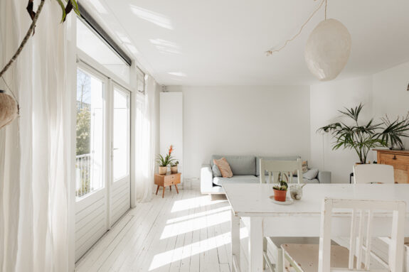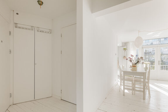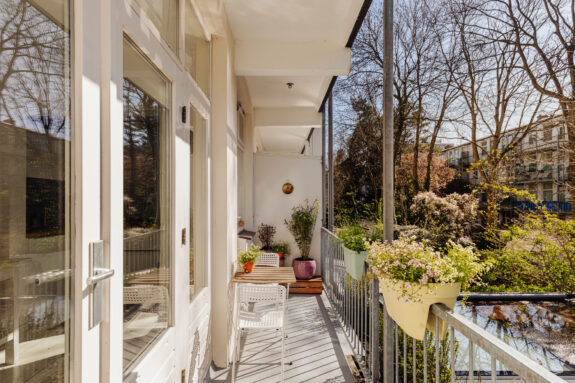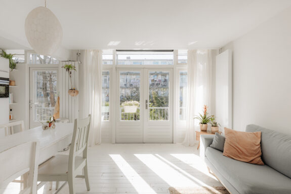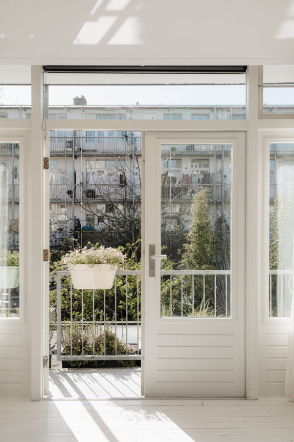 Mijn favoriete plekje in huis? Uh; van elk plekje kan ik genieten. Met uitzicht op buiten als ik op de bank een boek lees, aan de keukentafel met m’n laptop terwijl de zon naar binnen schijnt of op een zomeravond als mijn balkondeuren open staan en ik in mijn hangstoel op het balkon chill of met vrienden een borrel drink. Het is echt een stille oase in een drukke stad. De Jan van Galenstraat heeft de afgelopen jaren een enorme positieve ontwikkeling gemaakt en dat geldt eigenlijk voor de gehele wijk. Koffietentjes, sport en yoga plekjes, het opgeknapte park om de hoek en met uitvalswegen richting Haarlem/Zandvoort dichtbij en met de Jordaan op nog geen 5 minuten afstand kan je alle kanten op.