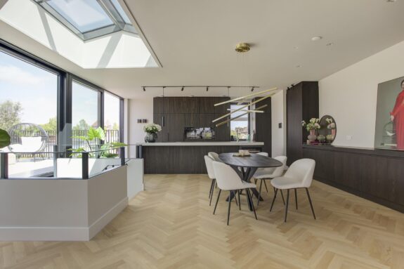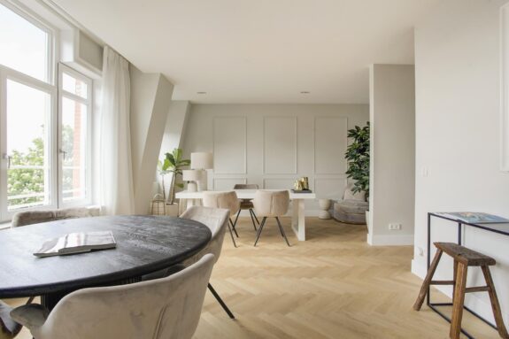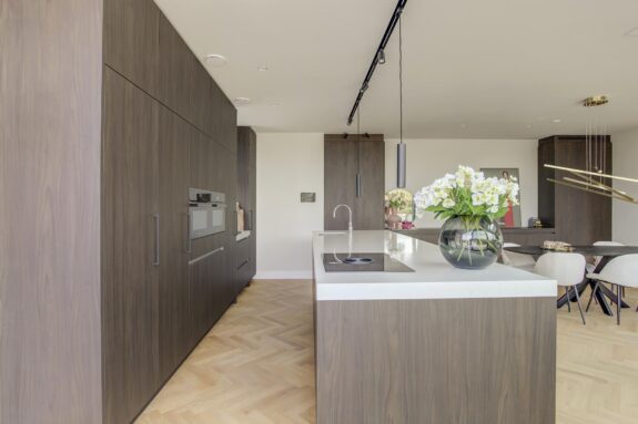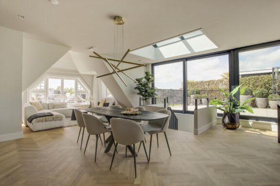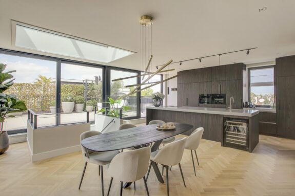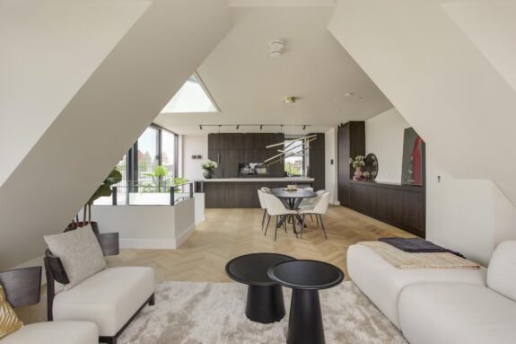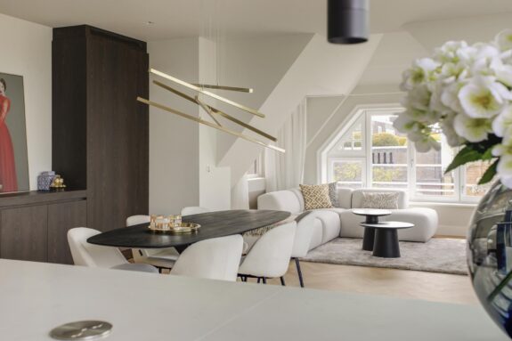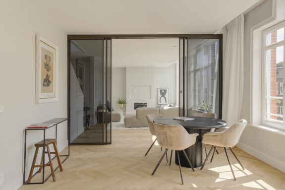 Interior designer Wolterinck and Ronald Janssen Architects designed this stunning luxury flat with balanced floor plans and thoughtful sightlines that invite grand living.