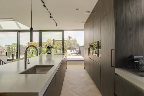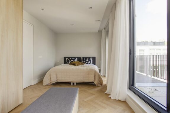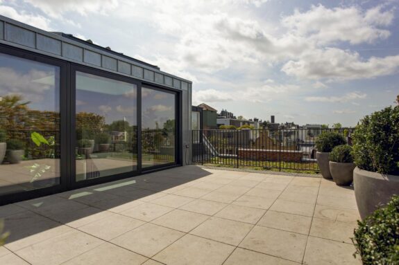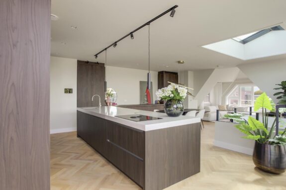 An absolute highlight of this Penthouse is the spacious living kitchen with roof terrace on top of the building. Here, inside and outside merge seamlessly. From the sunny roof terrace, there are clear views over the neighbourhood and towards the Concertgebouw.