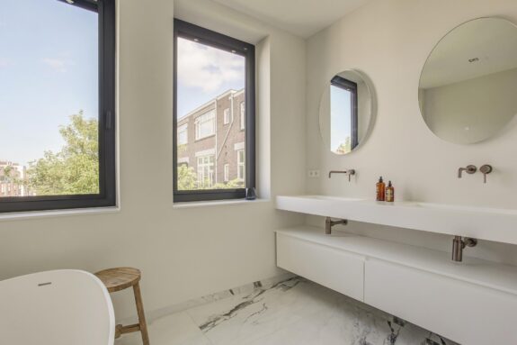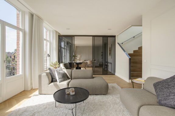 To improve the acoustics in the flats, a concrete floor was used. In addition, a floating floor was used, which ensures that fewer vibrations, such as impact noise, are transmitted to the concrete floor. In the heart of Amsterdam Oud-Zuid, within walking distance of world-famous museums and the beautiful Vondelpark, CS 49-51 appears. On Cornelis Schuytstraat, overlooking the attractive little square, CS 49-51 is located among the lively mix of artisanal neighbourhood shops, exclusive boutiques, cosy neighbourhood cafés and excellent restaurants. A charming yet fashionable street for epicureans and gourmets. The street exudes luxury but at the same time has a village atmosphere that can only be found in a few places in Amsterdam. It is not for nothing that this neighbourhood is called the Petit Paris of Amsterdam. CS 49-51 Cornelis Schuytstraat 49-51 consists of two townhouses that have been merged into five luxurious, turn-key flats, each with its own unique qualities in layout and finishing.
