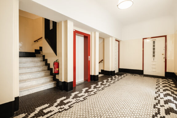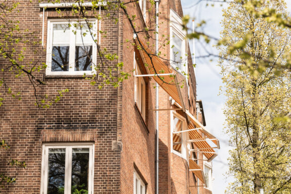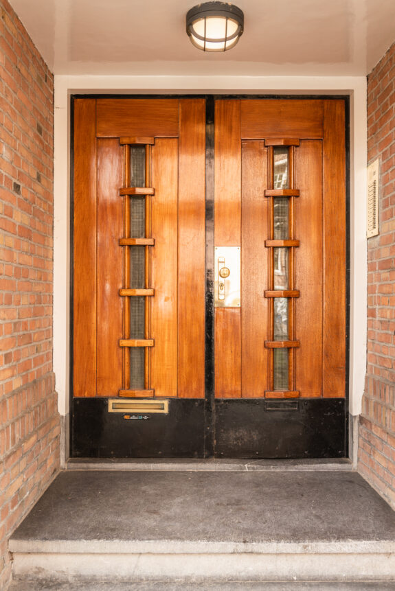 In the early 20th century, Amsterdam-based architect F.A. Warners (1888–1952) introduced the concept of the etagehuis, inspired by the grand apartment buildings of London, Paris, and Berlin. On each floor, he designed a select number of residences with the proportions and grandeur of a full-sized home. In and around De Lairessestraat, a total of nine such buildings were constructed, one of which is De Steenhoek. Warners himself resided in the ground-floor apartment of this building. While his work is often associated with the Amsterdam School, Warners’ architecture also bears distinct influences from the metropolitan styles he encountered in other European capitals. A defining characteristic of his designs is the use of high-quality materials—an approach he justified by noting that a building is only new for a short time but remains old for much longer. Though De Steenhoek is not designated as a listed monument, its distinctive architecture and location contribute to the historical and aesthetic value of its surroundings.
