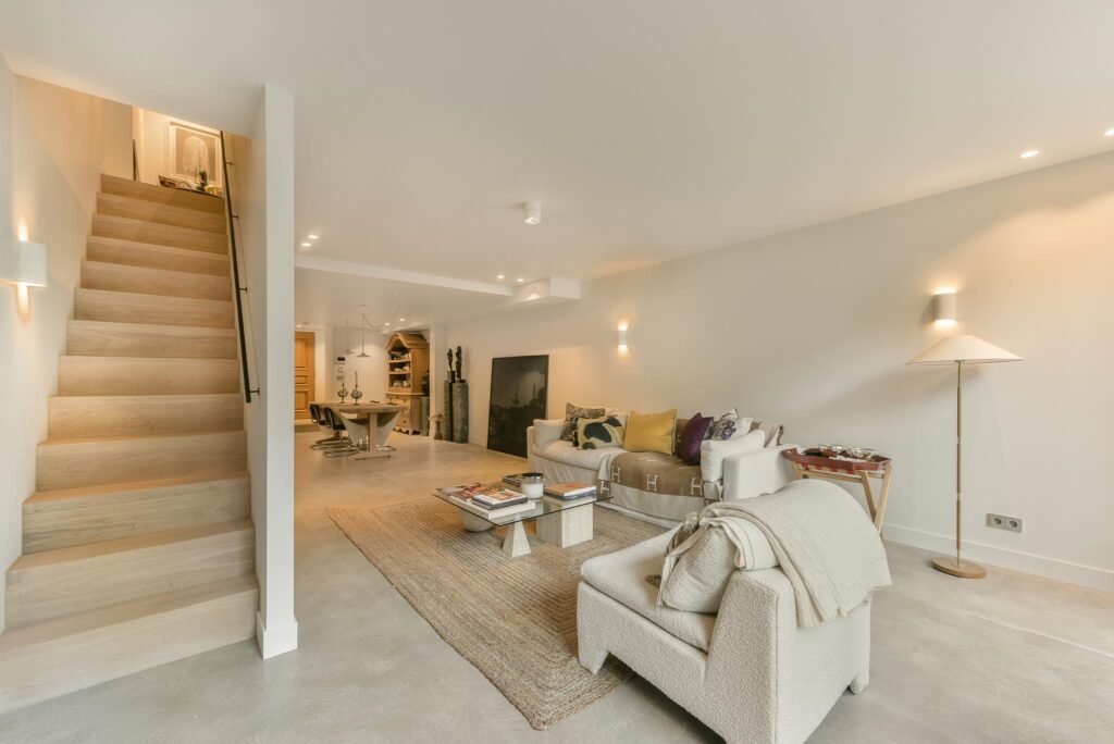 This beautiful furnished apartment is located on the ground floor and first floor of the building. The high-quality design, materials and many windows contribute to a unique living experience. The apartment with international allure has four bedrooms, two bathrooms and a terrace.