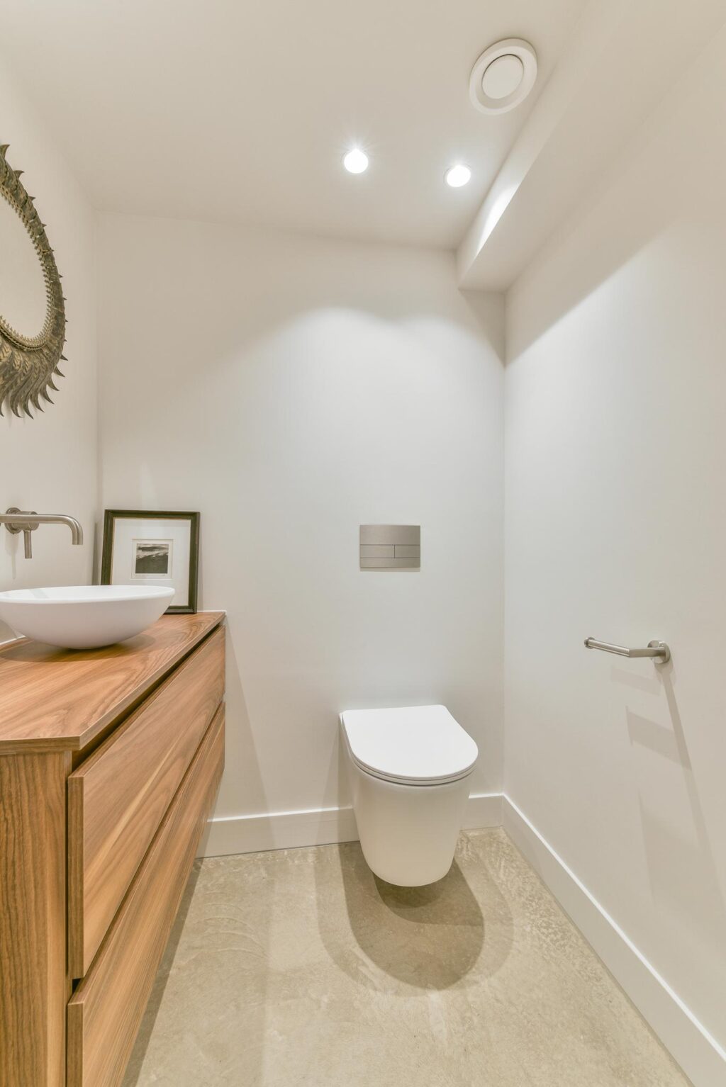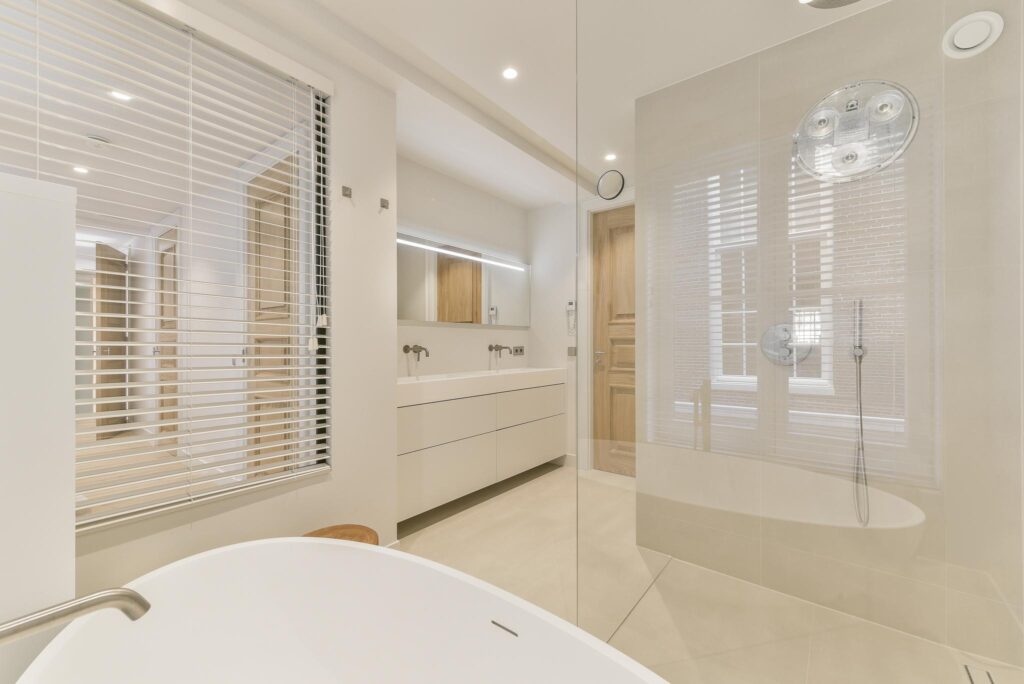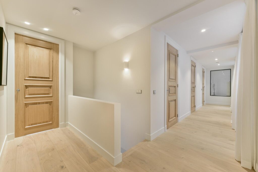 There are four spacious (bed) rooms on this floor, one of the rooms currently serves as an office. The bedrooms have fitted wardrobes and there is a lot of light thanks to the many windows. Both bathrooms are equipped with a bath, shower, double sink and toilet. Light materials and colors have been used, which gives a feeling of elegance and luxury.