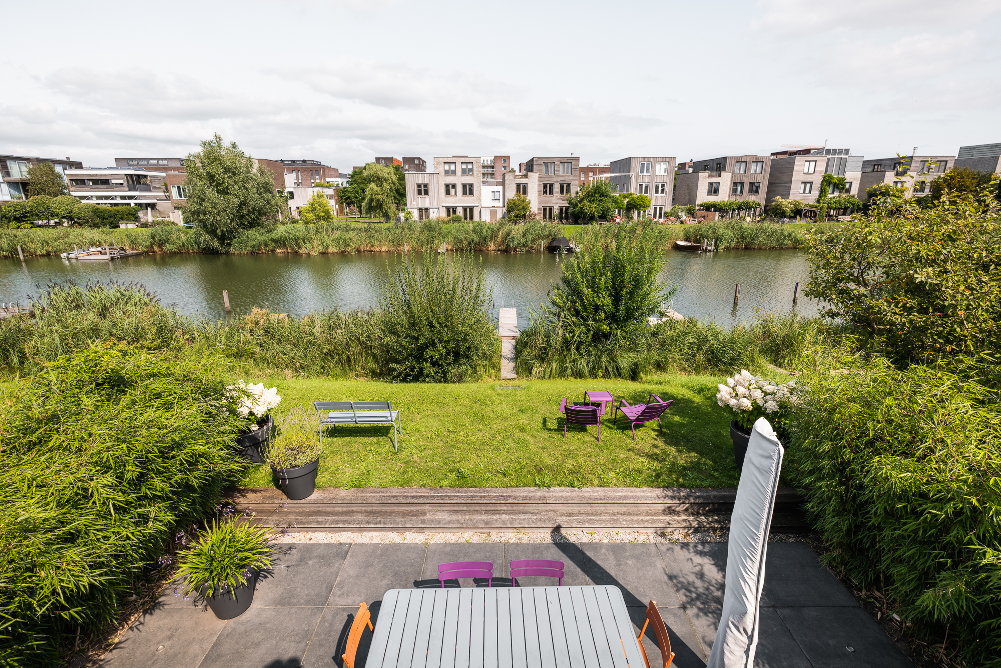 A spacious and bright waterfront home; an experience. Expansive, modern and with a comfortable floorplan, a multi-functional layout that makes it possible to not only live here, but also work from home. With a total of seven rooms, including an extra-spacious main floor that spans 163 sqm on the ground floor that cascades through to the waterfront garden. The home checks all the boxes of Amsterdam country living.