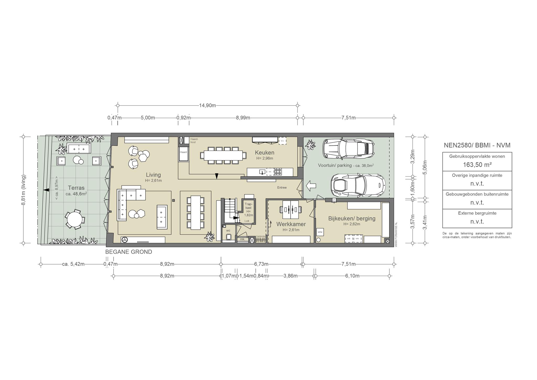 The Measurement Code is based on NEN2580 standards. The Measurement Code is intended to ensure a more universal survey method for indicating total net internal area (usable floor area). The Measurement Code cannot fully preclude discrepancies between individual surveys, due to e.g. differences regarding interpretation, rounding and restrictions to conducting measurement surveys.