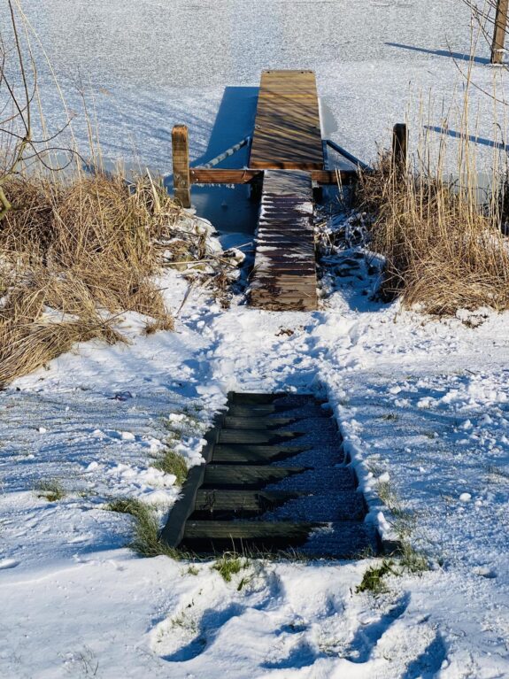 At the rear, off the living room, is a private garden that flows through into public greenery with an embankment down to the reeds and the water. Here, the private jetty features a swimming ladder and room for two boats. The water is deep enough for boats to pass by, and you can dive into the water for a refreshing dip. Slap on your skates in the winter and explore the area on ice. The house also includes two fabulous large roof decks. The result is a spacious upstairs level that opens to the outdoors.