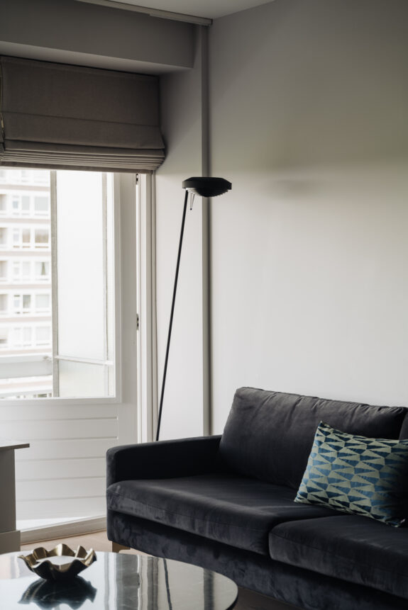Gemeenschappelijke entree met lift geeft toegang tot het appartement op de zesde verdieping. Centrale hal biedt toegang tot alle vertrekken. De woonkamer karakteriseert zich door haar ruime en lichte opzet met grote raampartij en de houten vloer. Vanuit de woonkamer is er toegang tot het royale balkon over de gehele breedte van circa 12 m² met uitzicht over het groen. Door haar ligging op het westen profiteert het balkon van een heerlijke middag- en avondzon. De moderne woonkeuken (Bulthaup - 2016) is aan de voorkant van de woning gelegen en is uitgerust met diverse luxe inbouwapparatuur. Verder beschikt de woning over een courant ingedeelde slaapkamer met inbouwkasten. De luxe badkamer is in 2019 geheel vernieuwd en heeft een royale inloopdouche, toilet en wastafelmeubel met onder andere Hotbath cobber kranen.