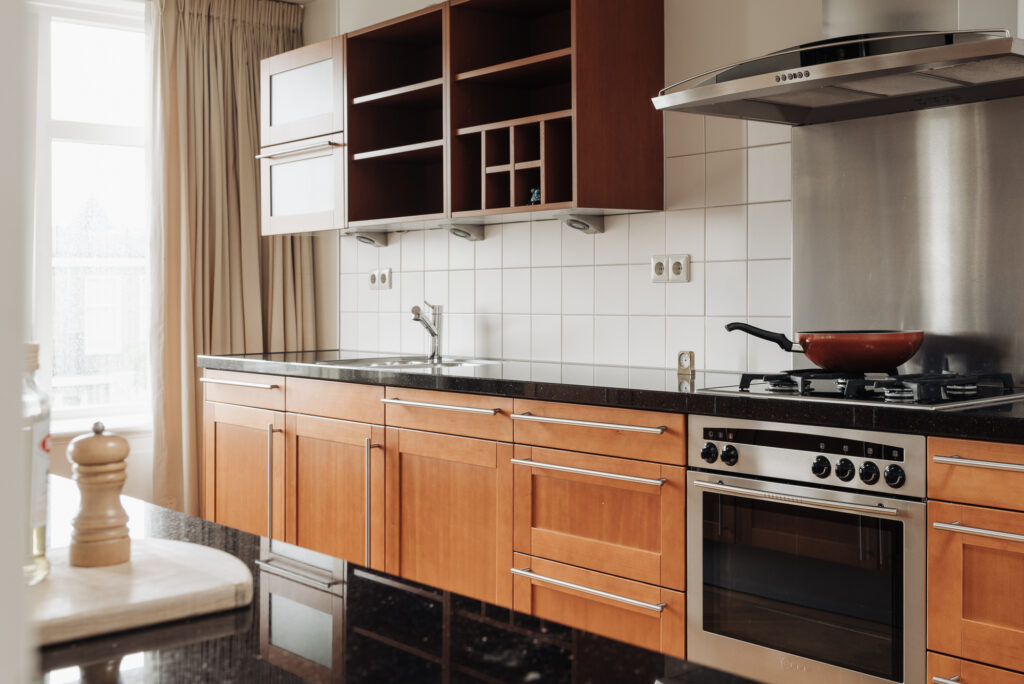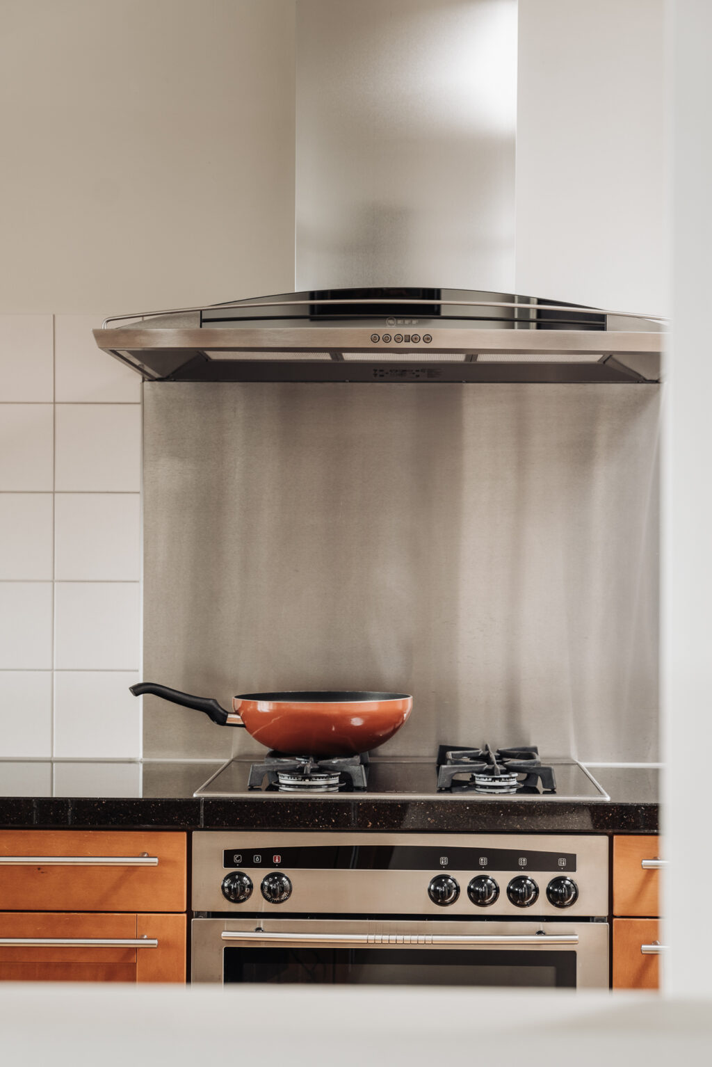 Het zitgedeelte heeft een open haard, wat extra sfeer en warmte geeft op een koude avond. Het eetgedeelte grenst aan de half open keuken, de keuken is uitgevoerd met hout en natuurstenen werkblad. Uiteraard is deze voorzien van diverse inbouwapparatuur. Direct naast de keuken is een extra bergkast met CV, handig als voorraadkast.