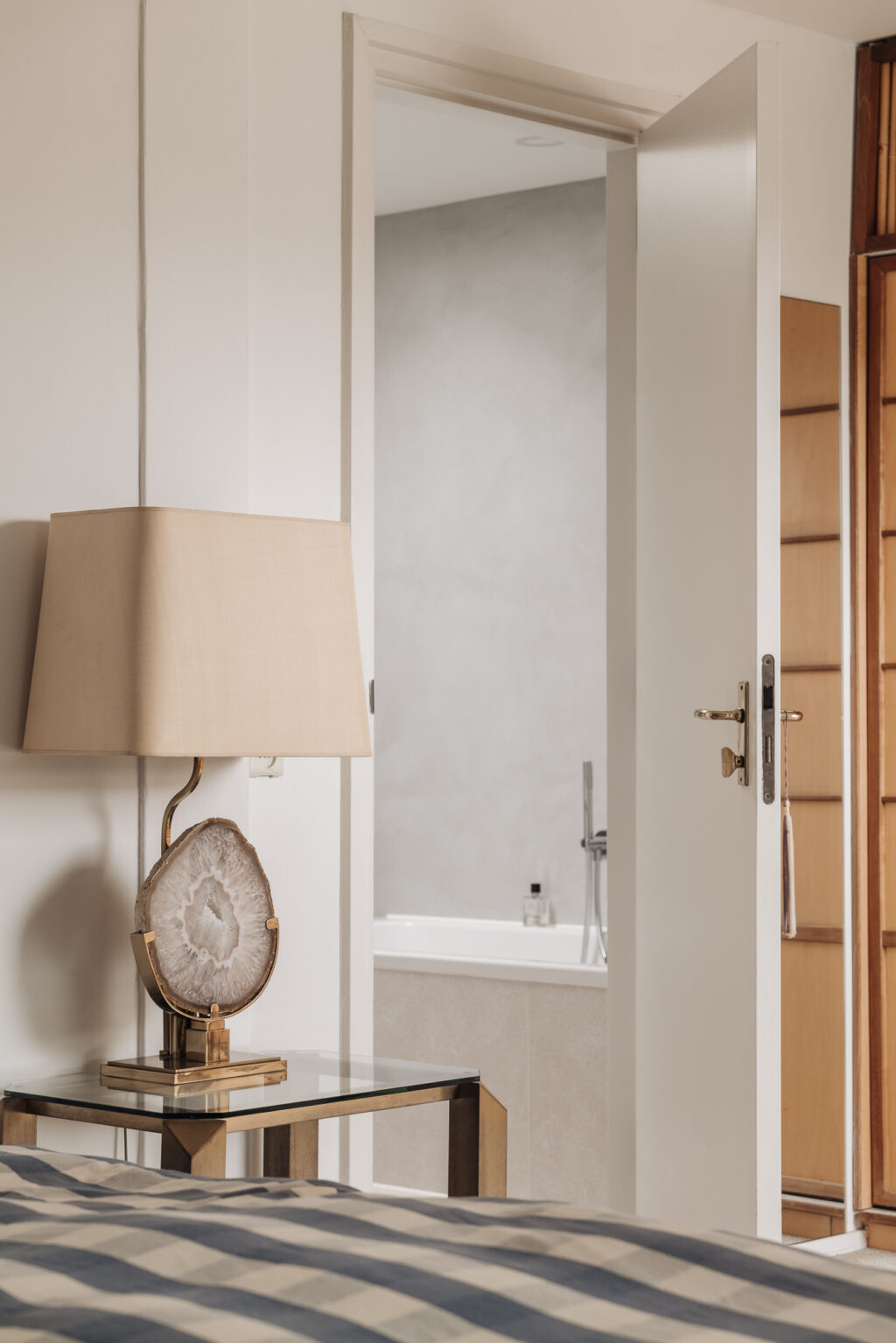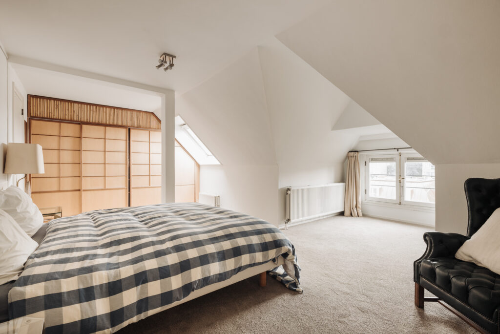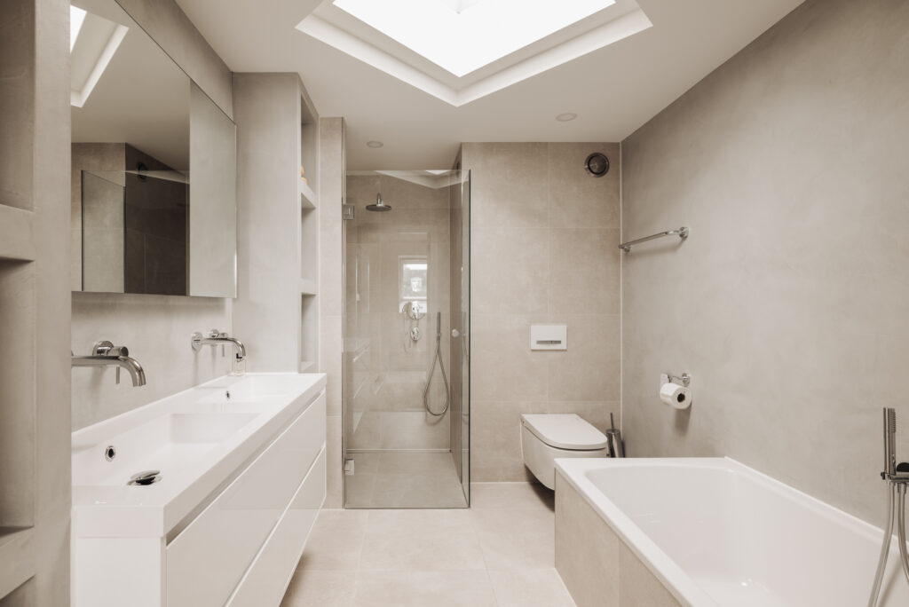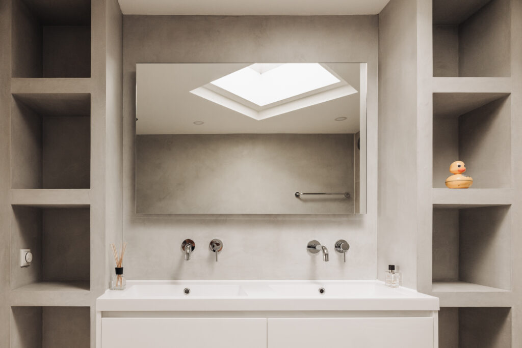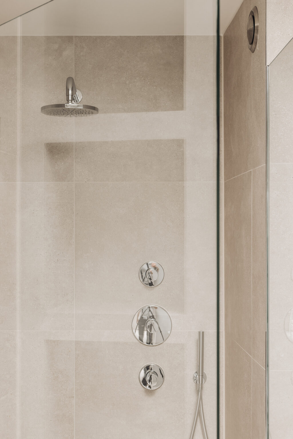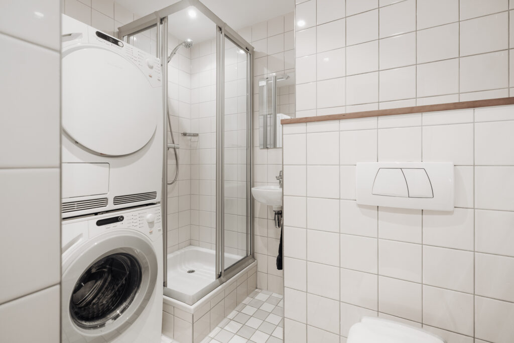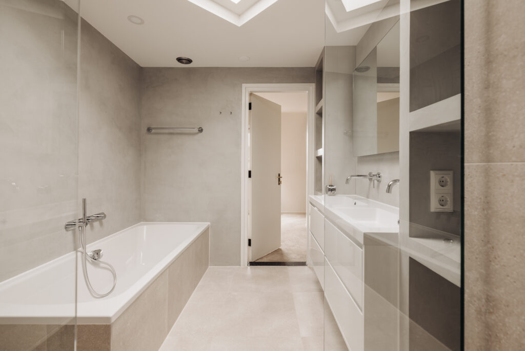 Het appartement heeft twee slaapkamers, tevens zijn er twee badkamers. Eén van de slaapkamers heeft een badkamer ensuite. De moderne badkamer is in 2020 gerenoveerd met een mooie grijze tegel en nieuw sanitair. De badkamer heeft natuurlijk licht middels een dakraam en is uitgerust met een ligbad, douche, dubbele wastafelmeubel en toilet. De tweede badkamer is vanuit de centrale hal toegankelijk en heeft een douche, wastafel en toilet. Hier is ook ruimte voor wasmachine en droger.