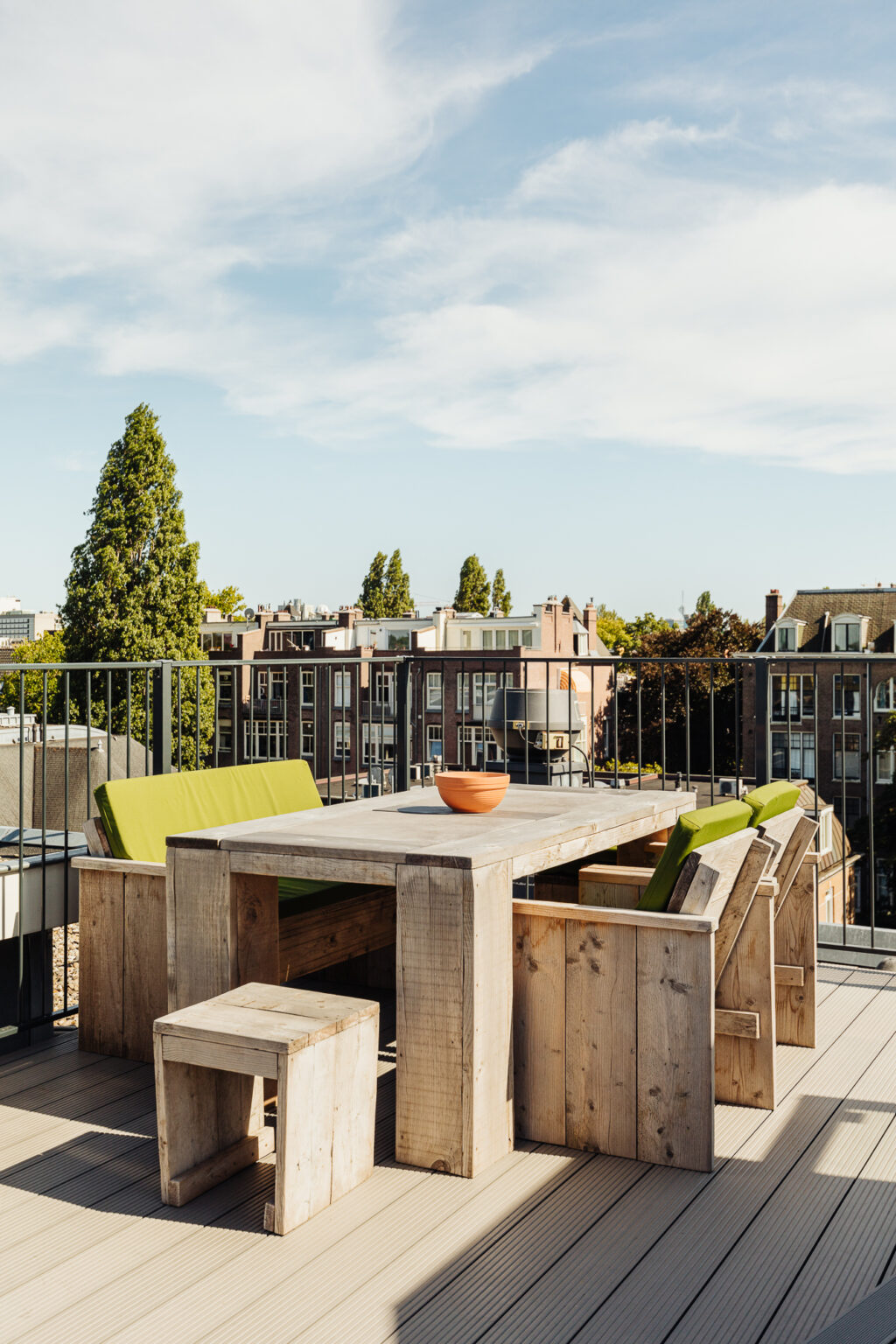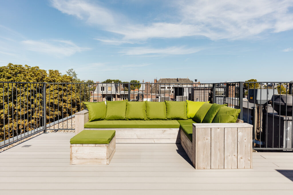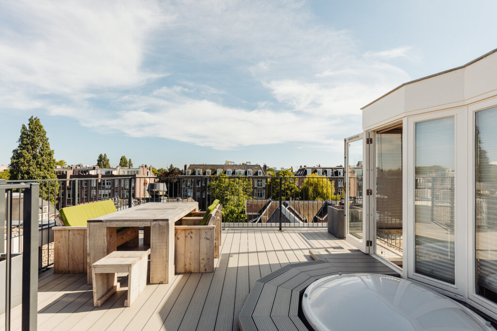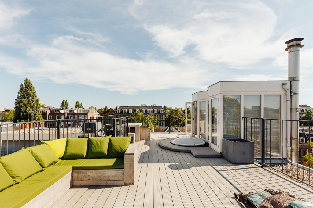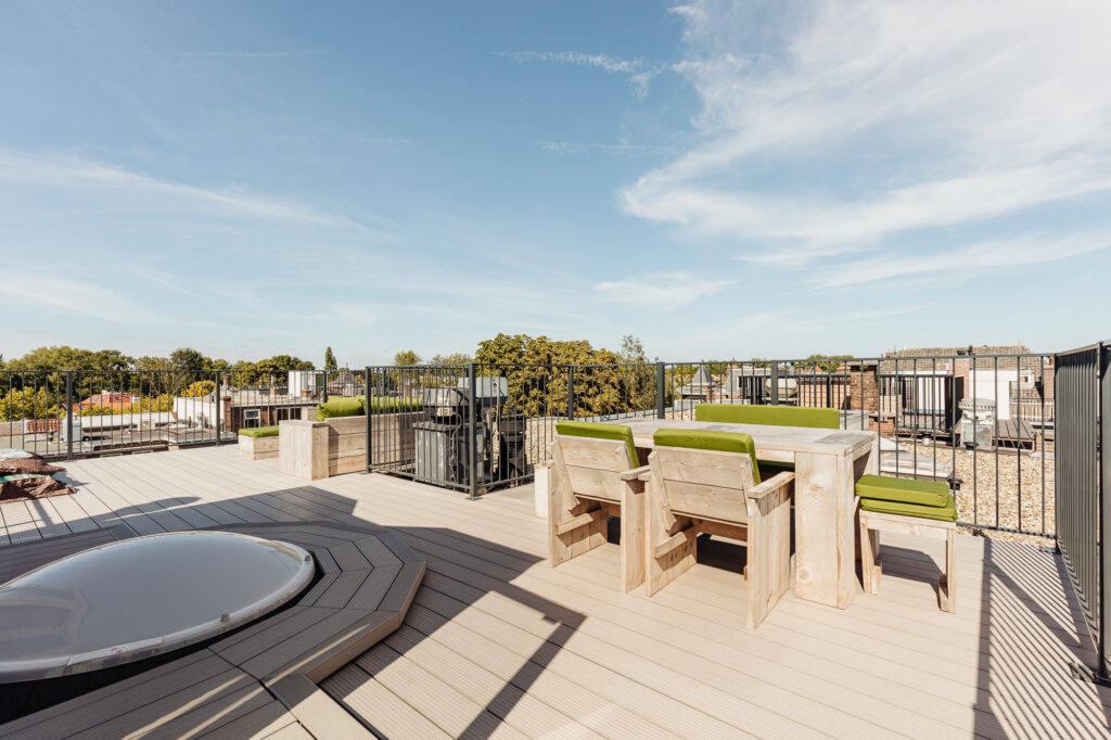Het appartement beschikt ook over een royaal dakterras, het terras is vanaf de woonkamer middels het dakhuis bereikbaar. Het terras is in 2021 vernieuwd en ruim opgezet. Het gehele terras is circa 49 m², een heerlijke en zonnige plek als verlengstuk van de living.