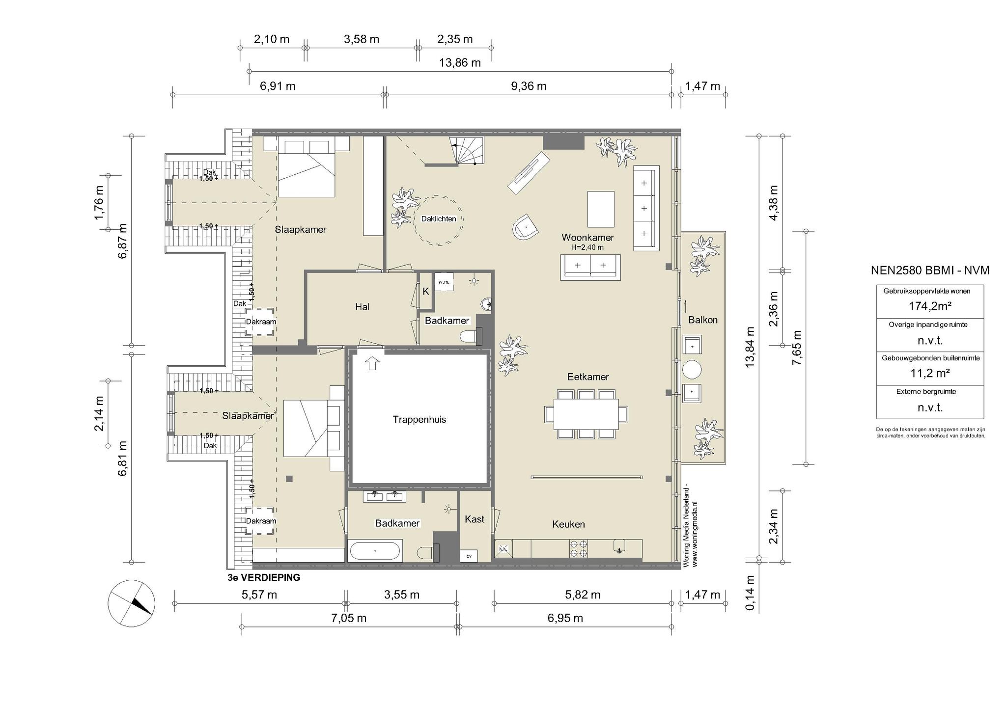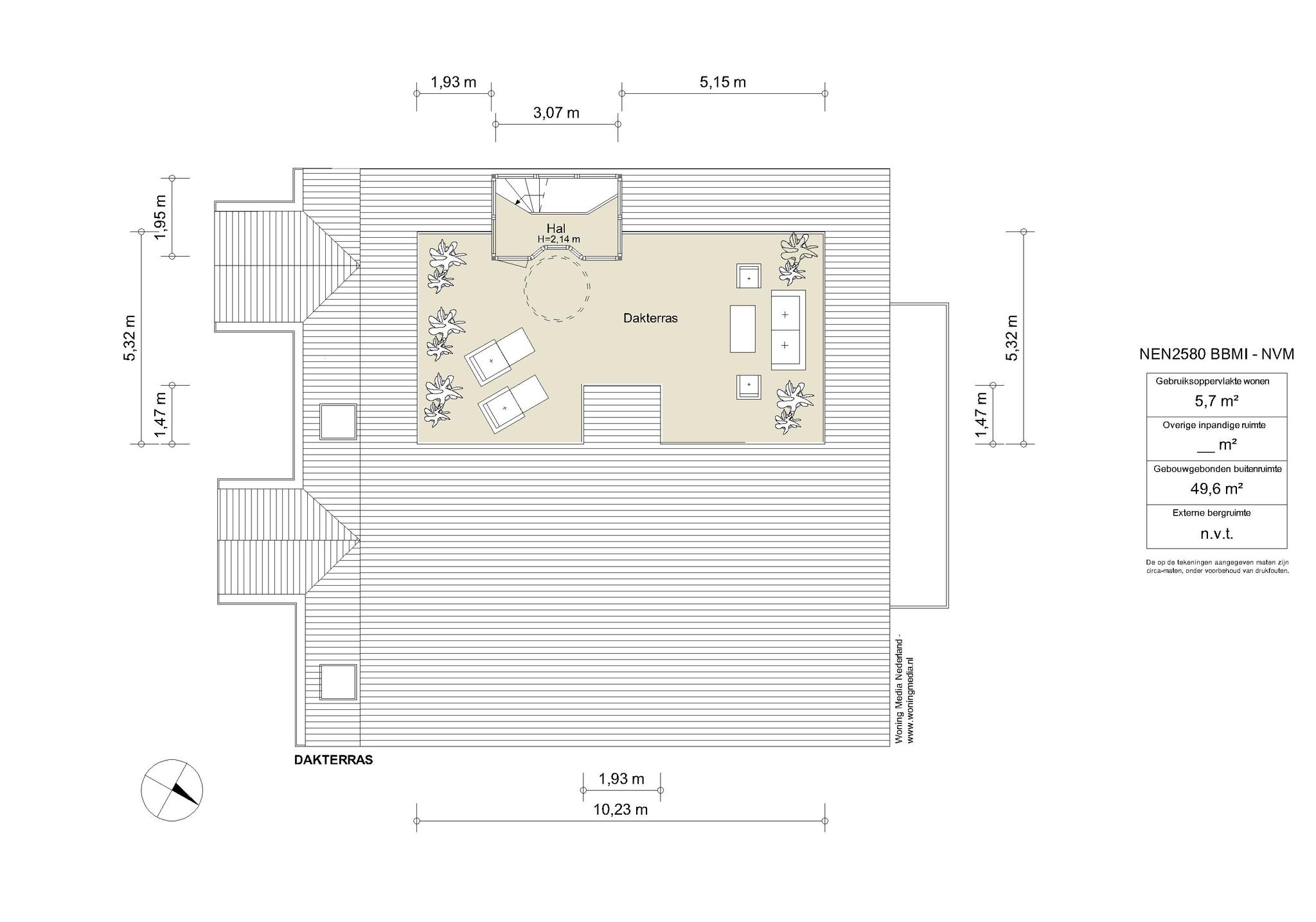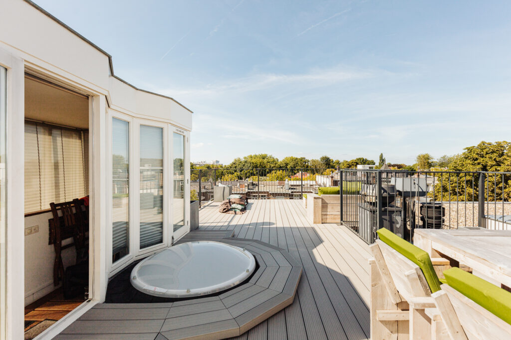 Het appartement beschikt ook over een royaal dakterras, het terras is vanaf de woonkamer middels het dakhuis bereikbaar. Het terras is in 2021 vernieuwd en ruim opgezet. Het gehele terras is circa 49 m², een heerlijke en zonnige plek als verlengstuk van de living.