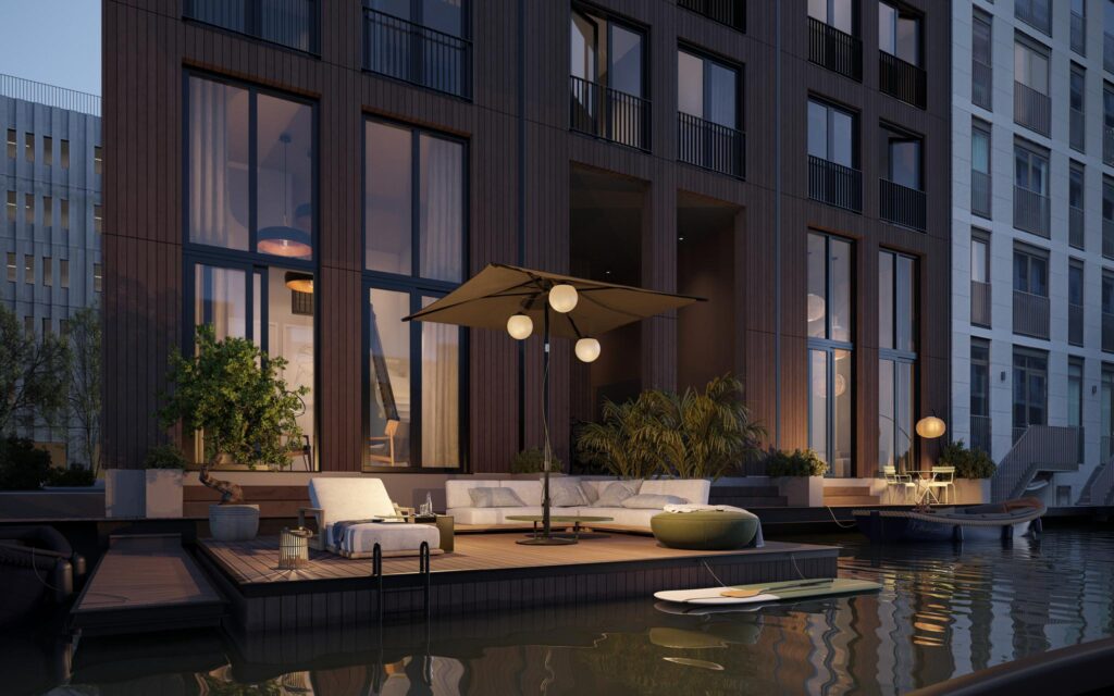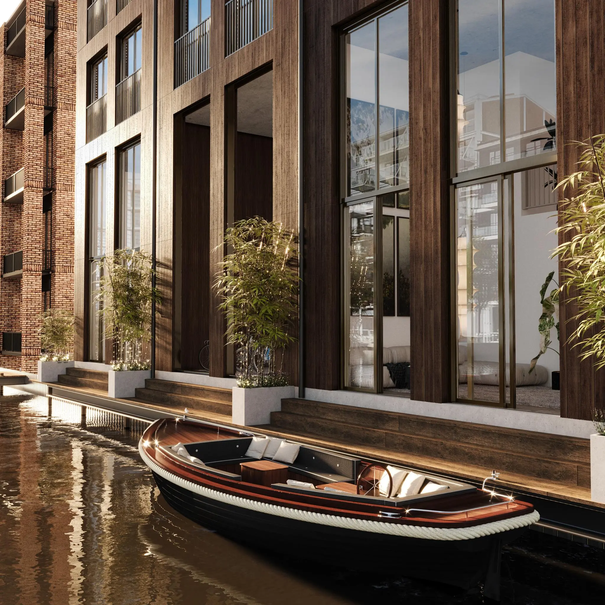 Een eigen steiger aan het Tolhuiskanaal en een tuin van ca 31 m2 aan de zonnige zuidkant van het gebouw. Twee unieke hoogtepunten van deze woning van ca. 75 m2, gelegen op de begane grond en de 1e verdieping van De Kaaij. Door de vide aan de waterzijde en de is er in de living een dubbele hoogte (ruim 5 meter) en grote raampartijen waardoor je hier optimaal het gevoel van wonen aan het water beleeft.