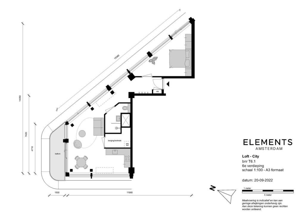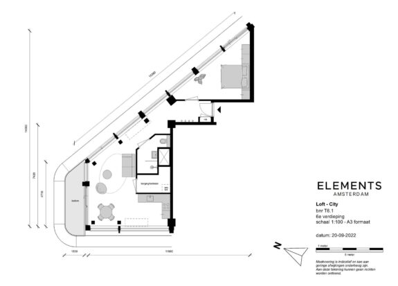 Op de kopse kant van de toren van Elements, op de zesde verdieping komt City Loft 6.1 van ca. 61 m2.