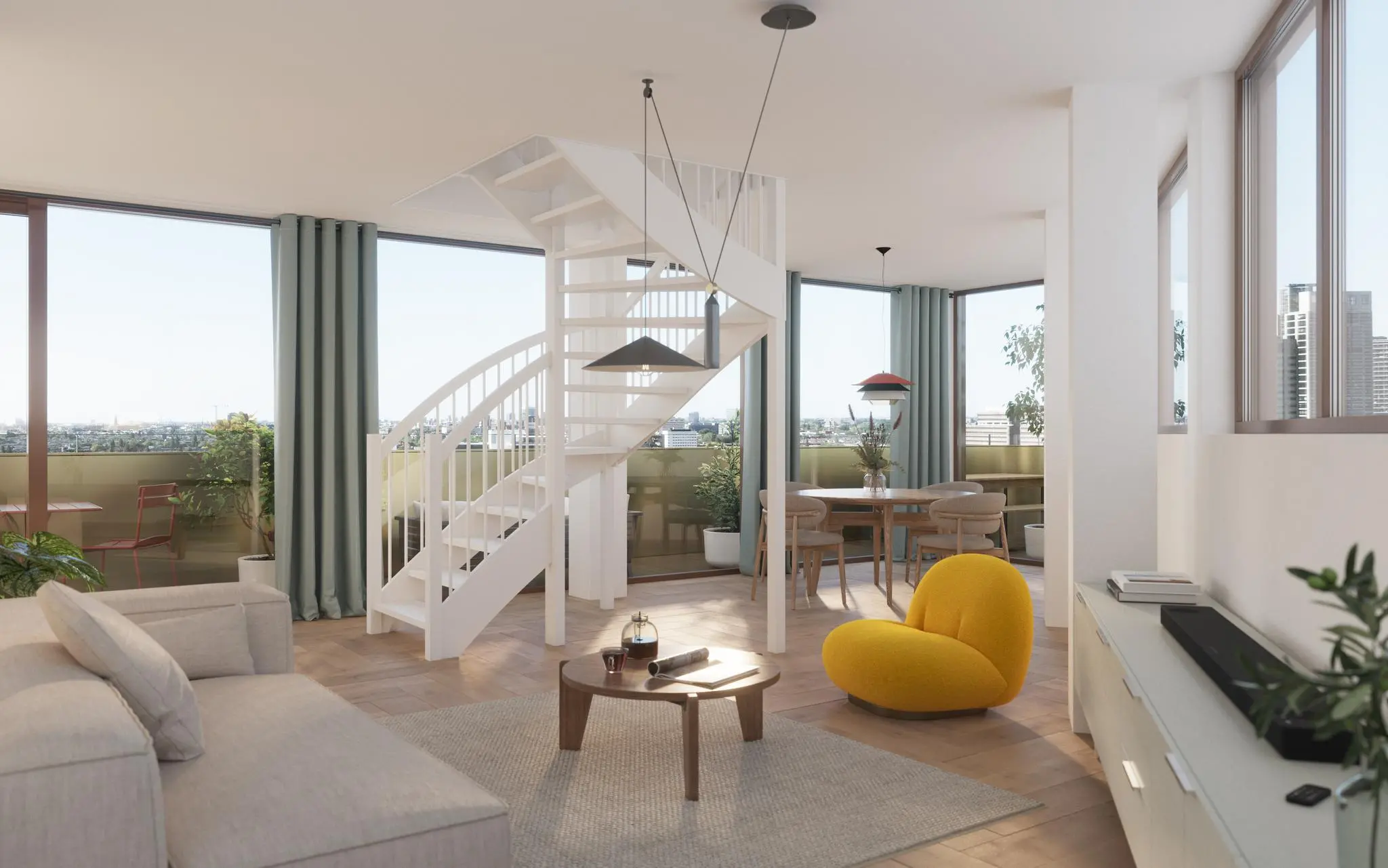 De Sky Twin Loft bevindt zich in de top van de toren, waar alles samenkomt wat Elements bijzonder maakt. Met een geweldige ligging op het zuiden heb je uitzicht op de Amstel én het park én de skyline van Amsterdam. Je geniet van spectaculaire uitzichten, aangenaam zon- en daglicht en een zachte wind. De Twin Lofts zijn naar eigen wens in te richten en hebben de mogelijkheid tot het toevoegen van een vide over de dubbelhoogte van de verdiepingen.
